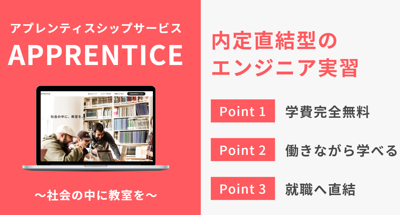 2.内定直結型エンジニア実習『APPRENTICE』:https://apprentice.jp/