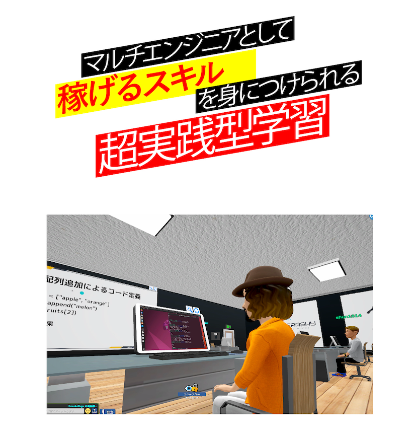 メタバース空間(仮想空間)を活用し、スクールでは自身の分身としてアバターを使用するため