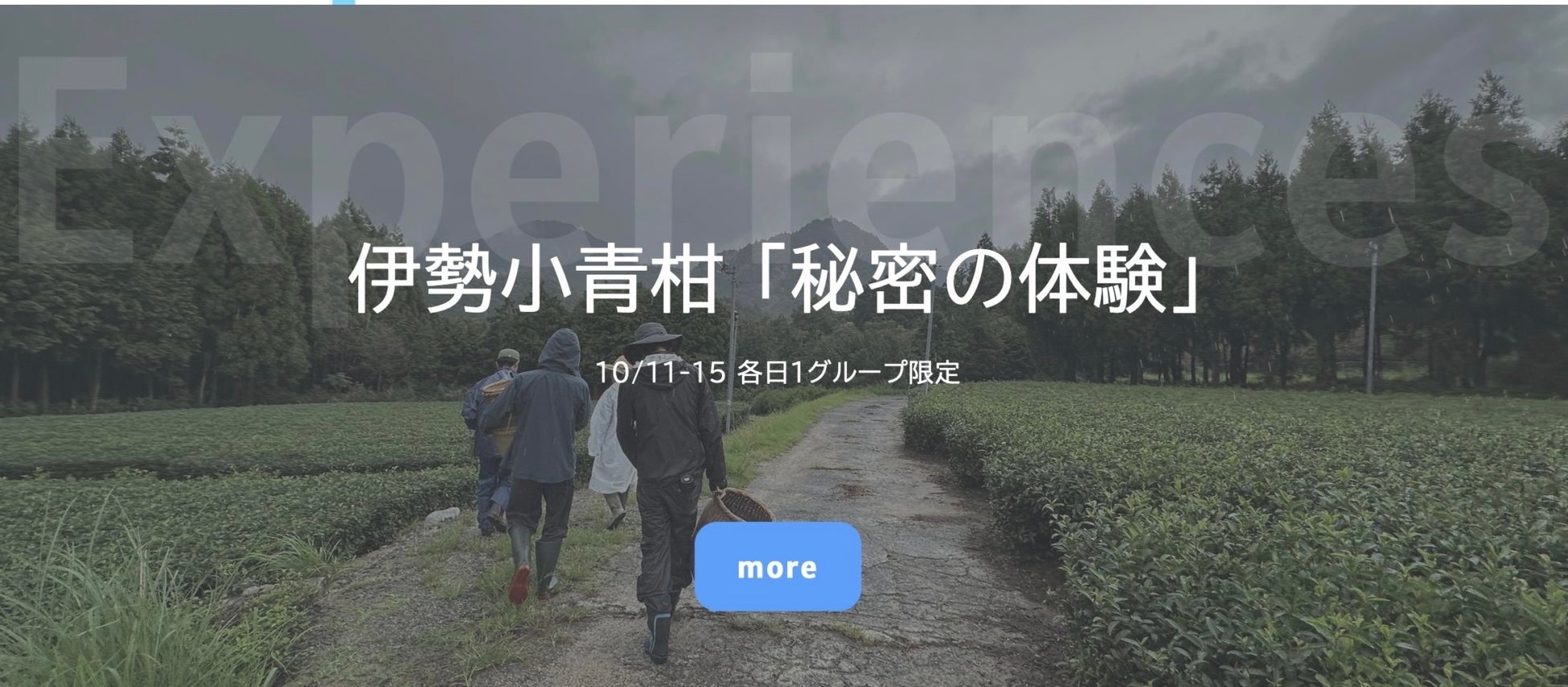 nokNokの当サイトに訪れていただくと、この関宿でのリアルな体験を予約することができます。今回ご提供する体験は、関宿の散策やJikonkaでのお茶体験等に加えて、この秋につくられる"柚子(ゆず)"に"幻の紅茶"を閉じ込めたお茶「伊勢小青柑(いせしょうせいかん)」の年に一度しかない生産の様子を見学できたり、茶畑にご案内したりといった"ルーツ"を巡る「秘密の」体験を期間限定・各日1グループ限定でお届けします。