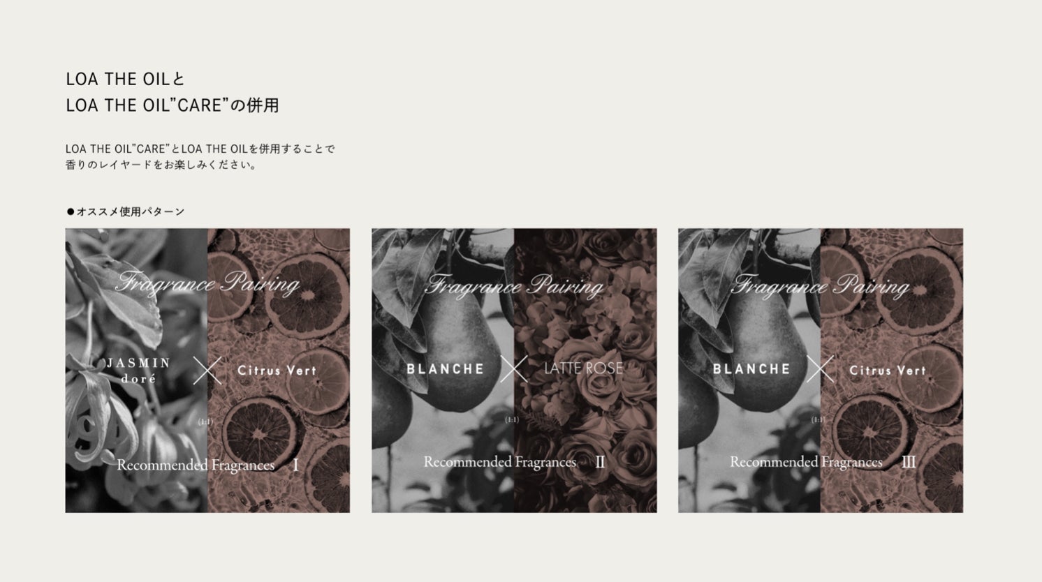 「LOA THE OIL "CARE"シリーズ」は、人気商品「LOA THE OIL シリーズ」のいずれのオイルとも併用してお楽しみ頂けます。