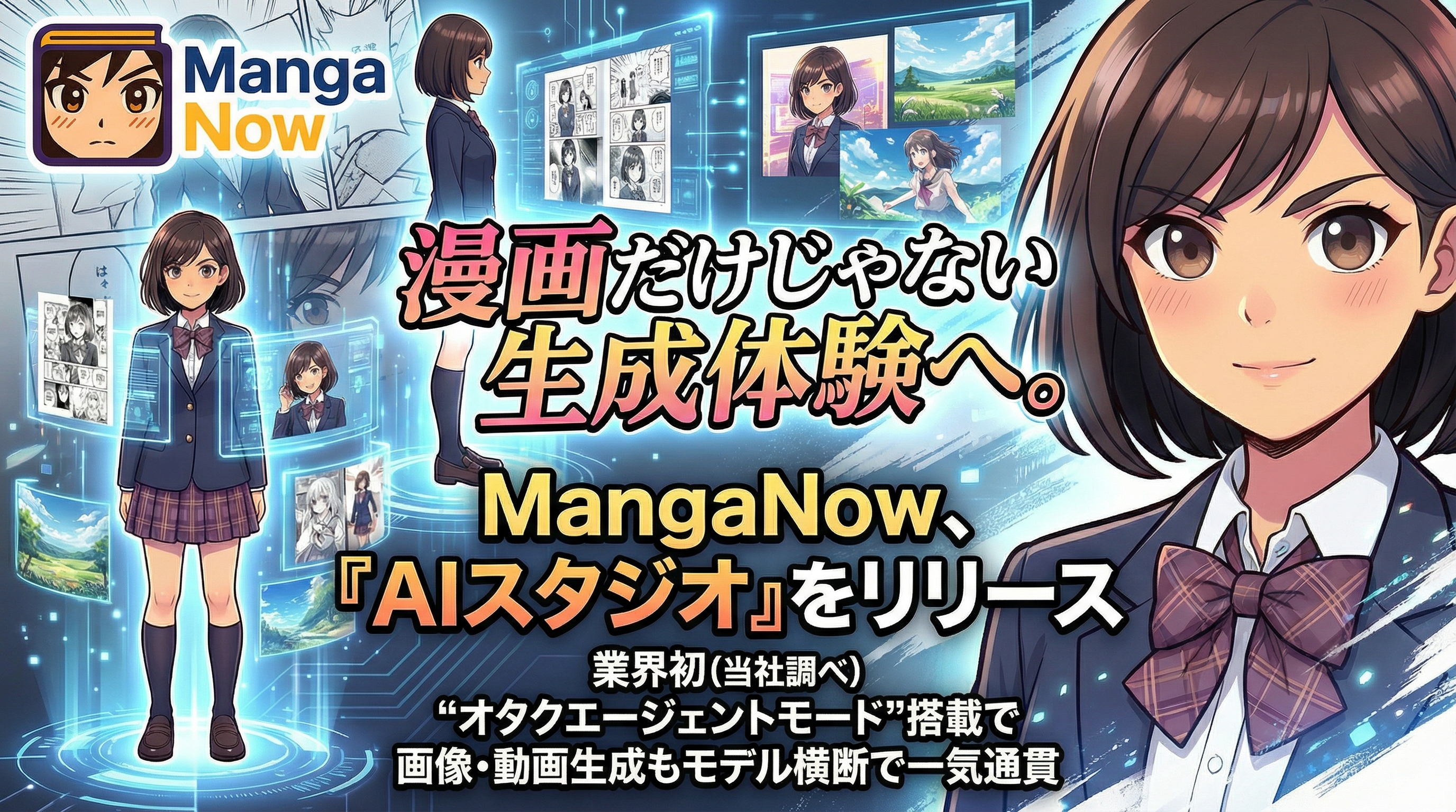 漫画だけじゃない生成体験へ。MangaNow、「AIスタジオ」をリリース──業界初(当社調べ)「オタクエージェントモード」搭載で画像・動画生成もモデル横断で一気通貫