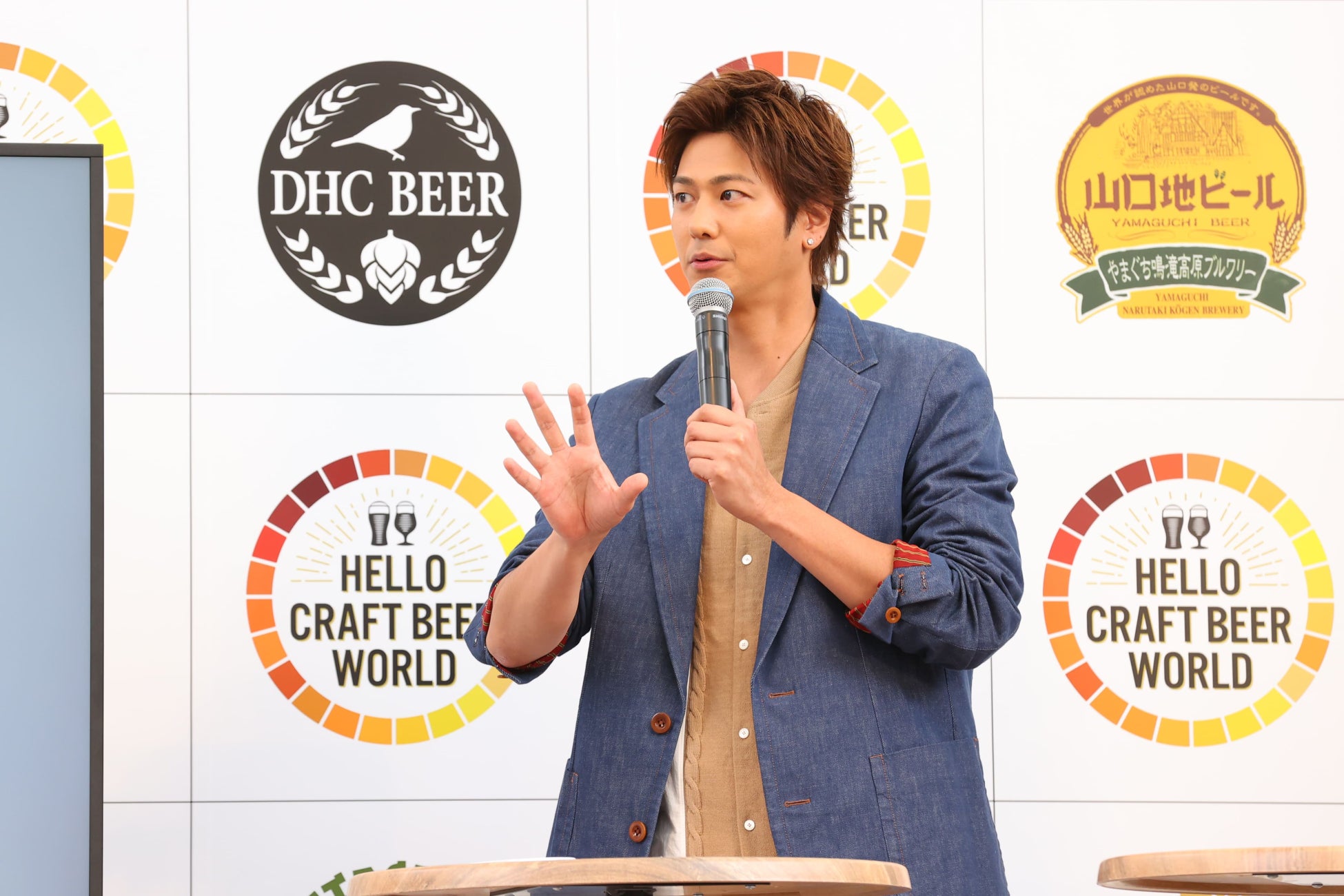 第2部では、お客様第一号として速水もこみちさん、森泉さんが登壇し、MCより『HELLO CRAFT BEER WORLD』の楽しみ方を紹介。説明を受けた森さんは「どんな風にペアリングをするのか気になります、新しい発見が楽しみです」とコメント。続いて、クラフトビールトークではマスターブリュワーの田山が登壇し、「まだ飲んだことがない、楽しみ方がわからないという方が多い。クラフトビールは特別なビールじゃないんです。クラフトビールを知ると豊かな時間を過ごせるので、1人でも多くの方に知ってもらいたい」と『HELLO CRAFT BEER WORLD』開催にかける思いを語りました。