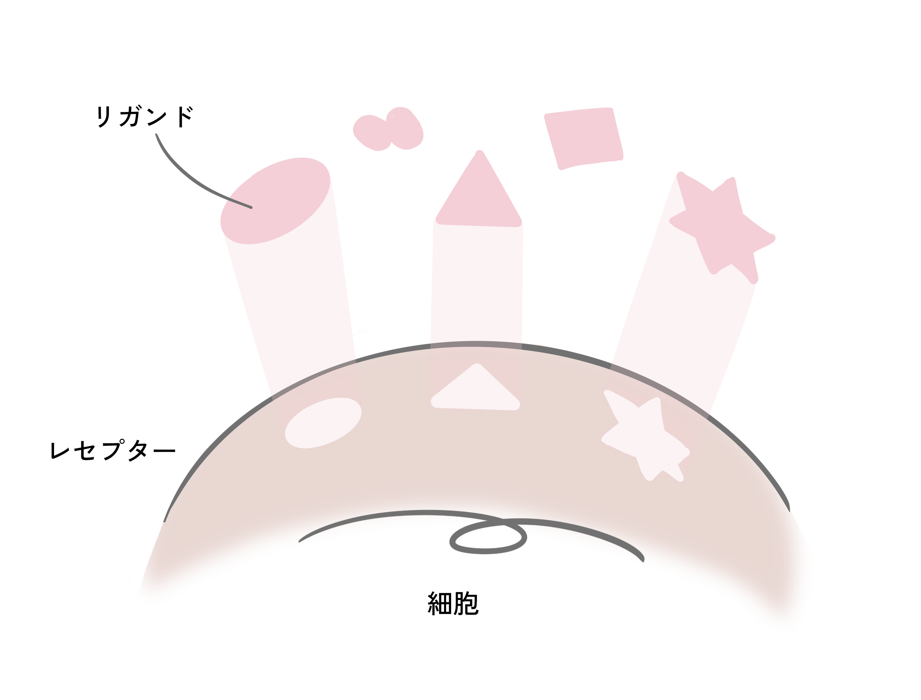 私たちの体は37兆個の細胞でつくられているといわれていますが、一つひとつの細胞の表面には細胞の性質ごとに異なる形をしたカギ穴(レセプター)があり、このカギ穴にしっかりと結びつくカギ(リガンド)を持つ物質でなければ受け取ることができません。つまり細胞が活性化するには、ぴったり合うカギを持つ物質が不可欠なのです。