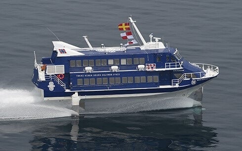 高速ジェット船は、ジェットエンジンで海水を吹き出し空気のかわりに海水から揚力を得て飛ぶ「海のジェット機」です。海面から浮き上がって航行する為、船体への海水の抵抗が少なくなり、時速約80kmの高速航行を可能にし、波の影響も受けずほとんど揺れないので、船酔いの心配も解消しました。ぜひ、快適な高速ジェット船の乗り心地を体感して下さい。