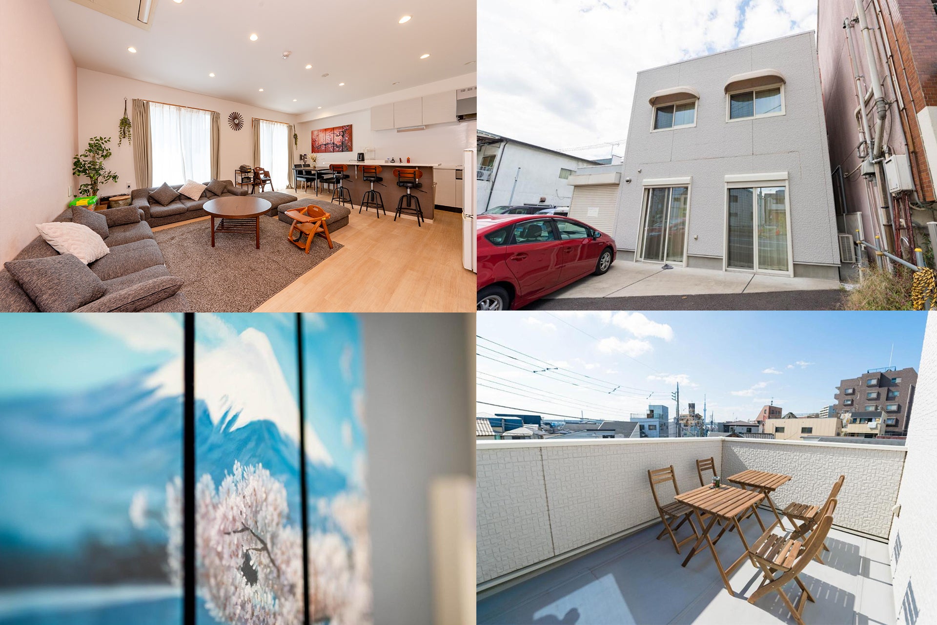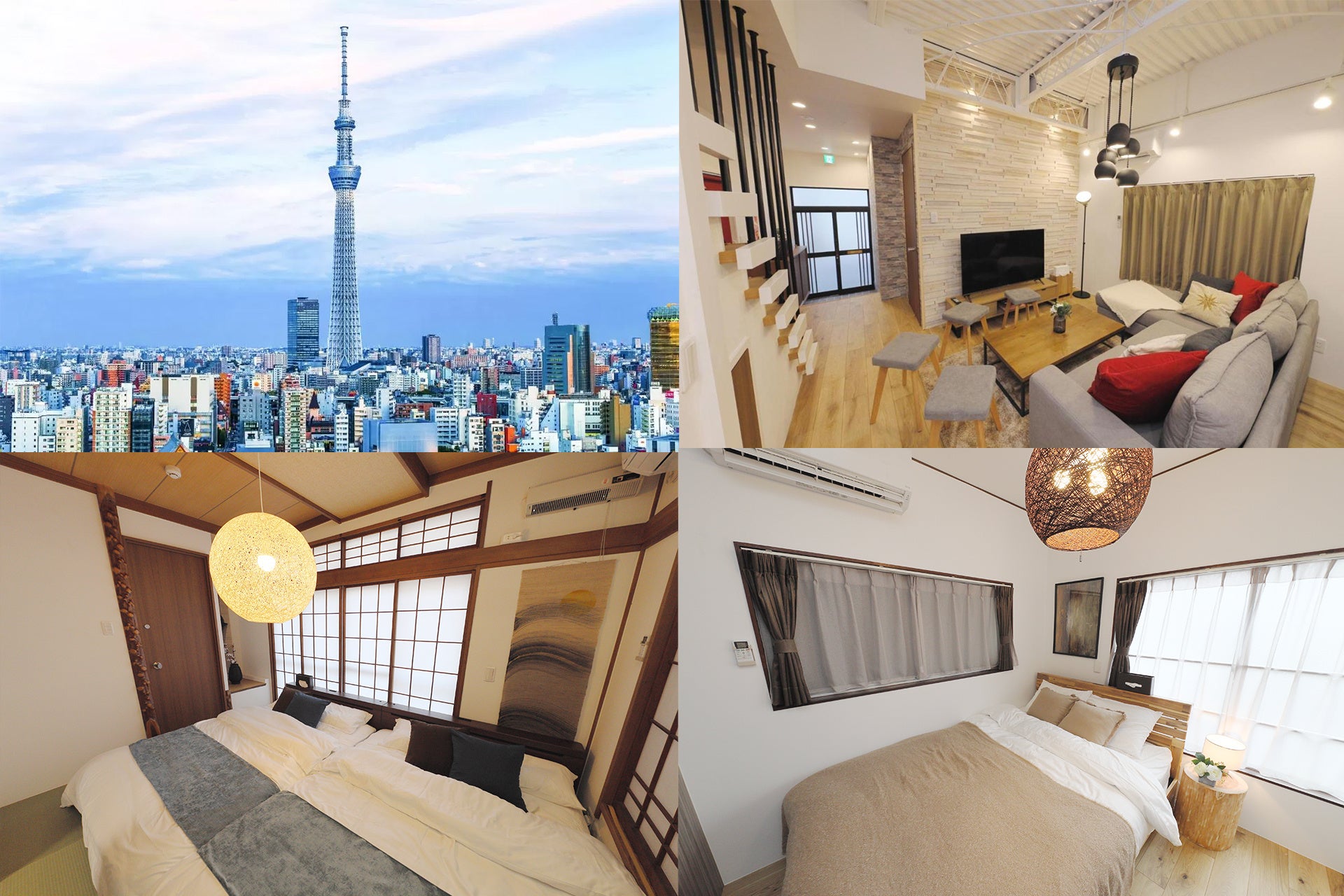 東京メトロ半蔵門線・都営浅草線・京成線 押上(スカイツリー駅)駅より徒歩3分という好立地!14名収容可能な戸建て貸し切り物件です。