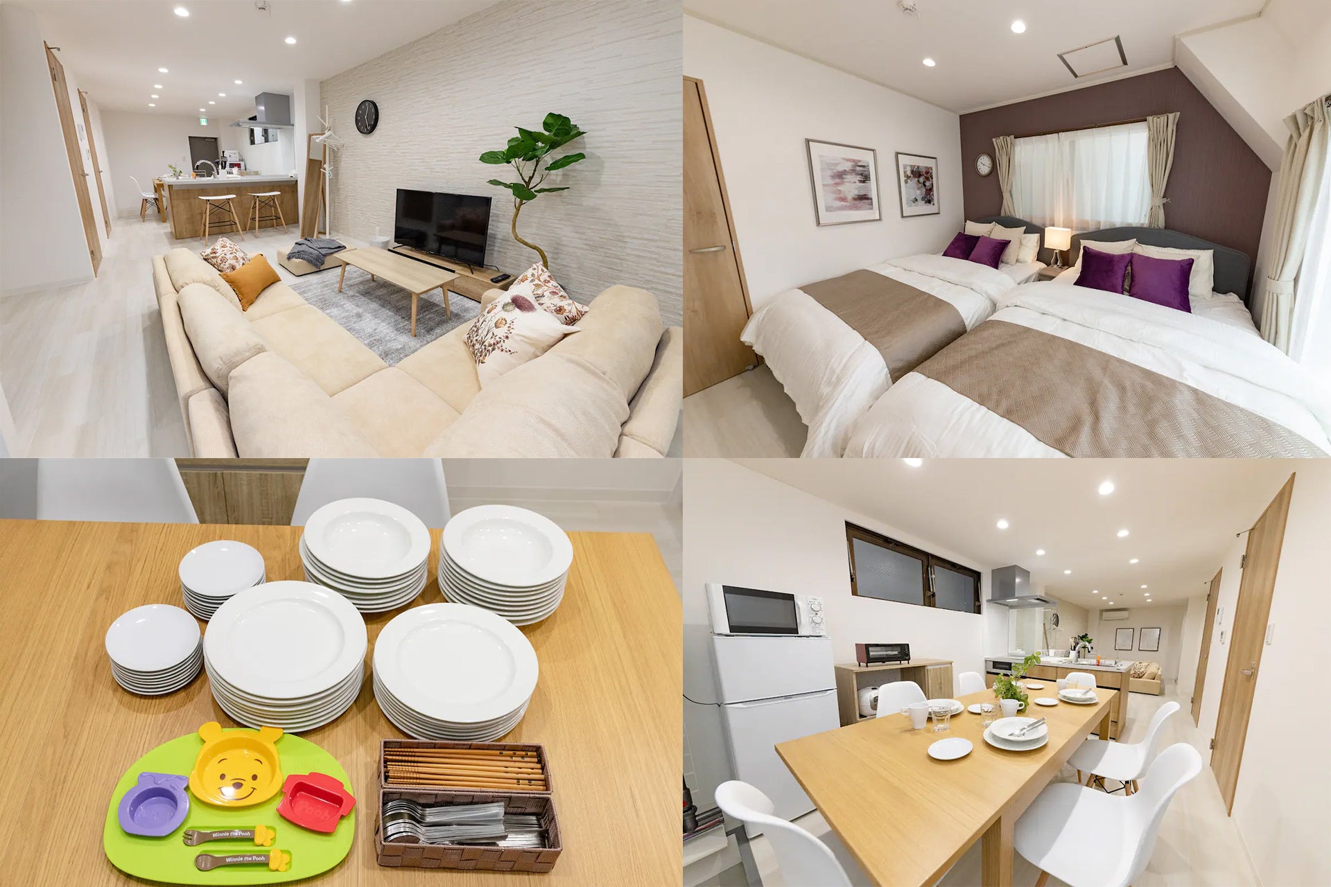 10名以上で来るお客様がゆったり過ごせるように、広いリビング+3寝室以上の寝室があること、バスルームやシャワー、洗面所、トイレなどの水回りを増やすことを意識しています。海外観光客の3世帯でお越しいただくような大家族でもゆったり過ごすことができます。