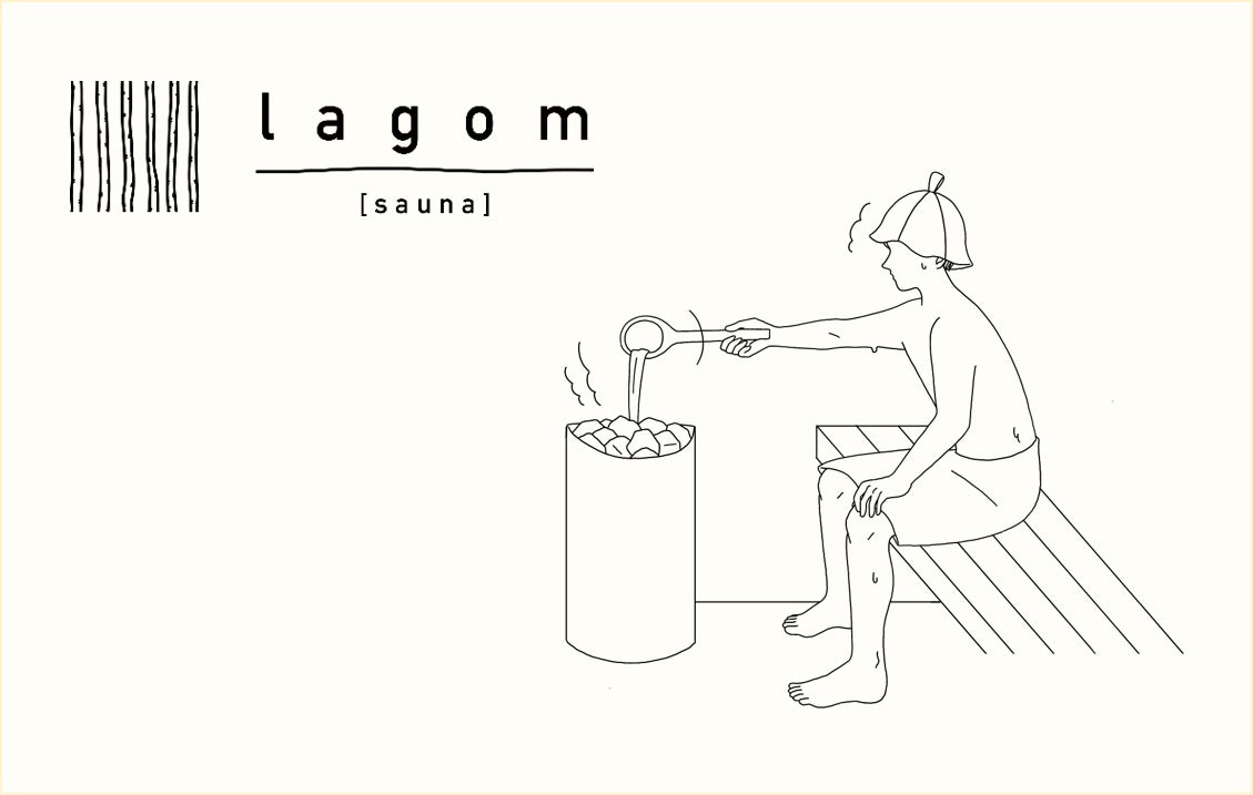 「lagom」は北欧の言葉で「ちょうどいい」を意味します。「ちょうどいいサウナ」で自分のペースで「ちょうどよく整う」、そんな思いを込めています。