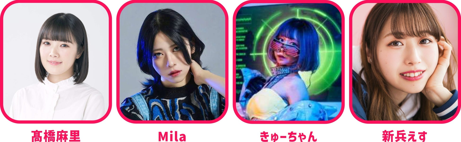 ※写真左から、声優e-Sports部の髙橋麻里さん、インフルエンサーのMilaさん、きゅーちゃん、新兵えすさん。