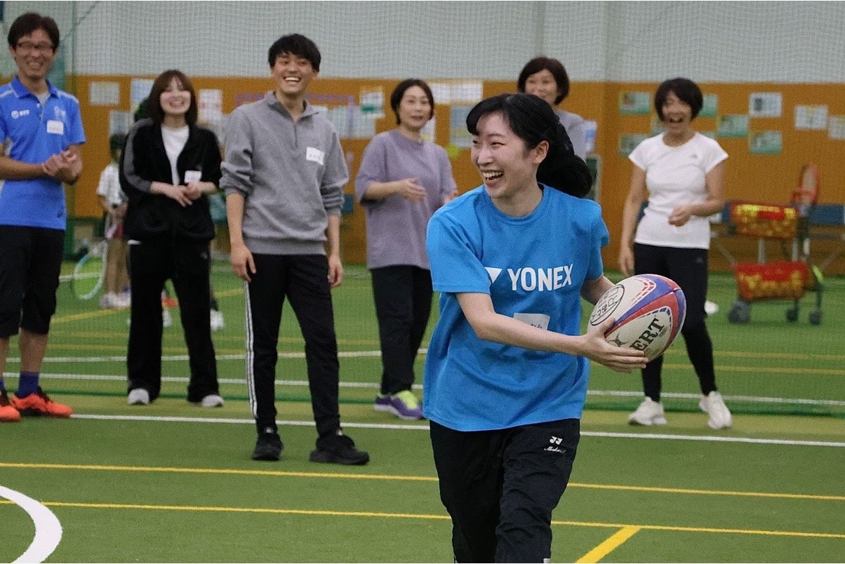 ラグビースキル向上を目的としたレッスンではないので、タックルなど激しい接触はなく普段あまり体を動かす機会が少ない方でも無理なく参加できます。ほとんどの方が未経験であるからこそ、できないことへの恥じらいなく、まずは「やってみる」ことで、普段あまり関わることのない社員同士のつながるきっかけになり、自然と協力し、コミュニケーションもとりやすい環境となります。