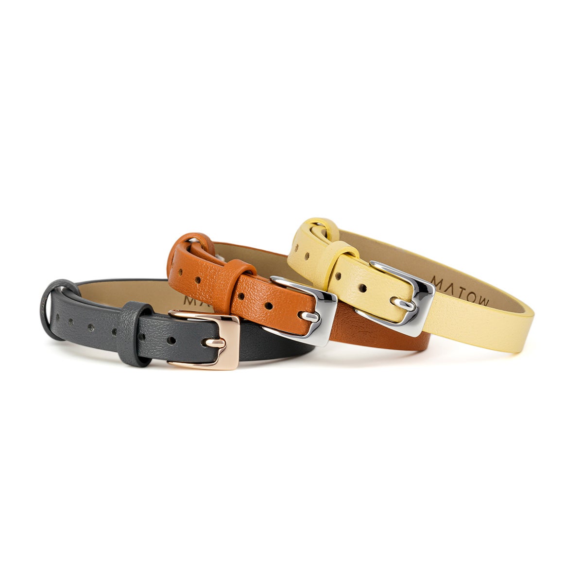優しく腕元を彩り明るい気持ちにさせてくれるルミナスイエローカラーの「ミモザ」、肌なじみが良く親しみのあるキャメルカラーの「チューリップ」、チャコールグレーカラーがスタイリッシュな印象の「カイウ」の3種が新たにラインナップ。
