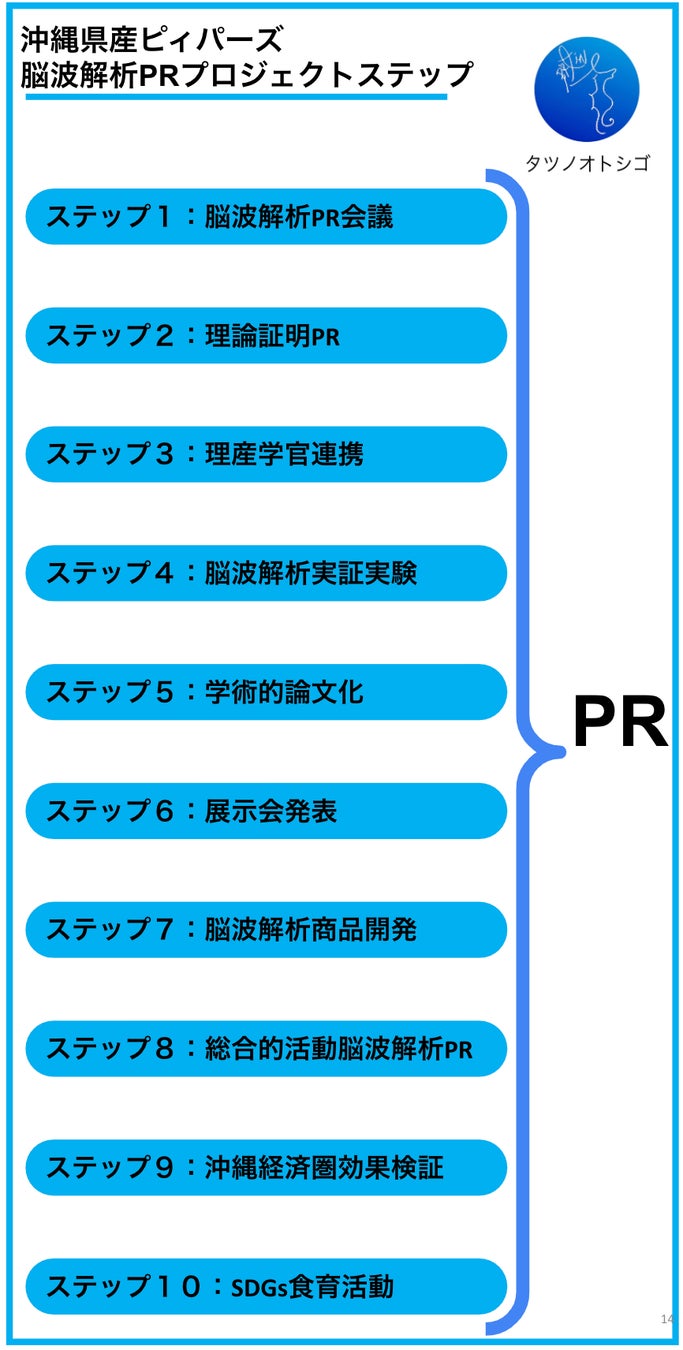 沖縄県産ピィパーズの「食べもの」と「食べかた」について、脳の活性化に関する情報を組み込みながら、脳波解析研究結果情報を組み入れながらその魅力の普及に努めていきます。