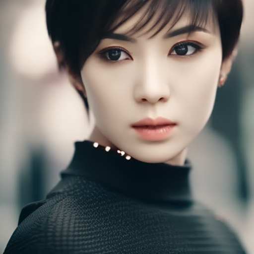 美しい日本の女優、ショートカットの黒髪、クールでスレンダー、小顔、美しい顔、美しいモデル、顔のクローズ アップ、ソニー α7、35 mm レンズ、f8 の写真、一人