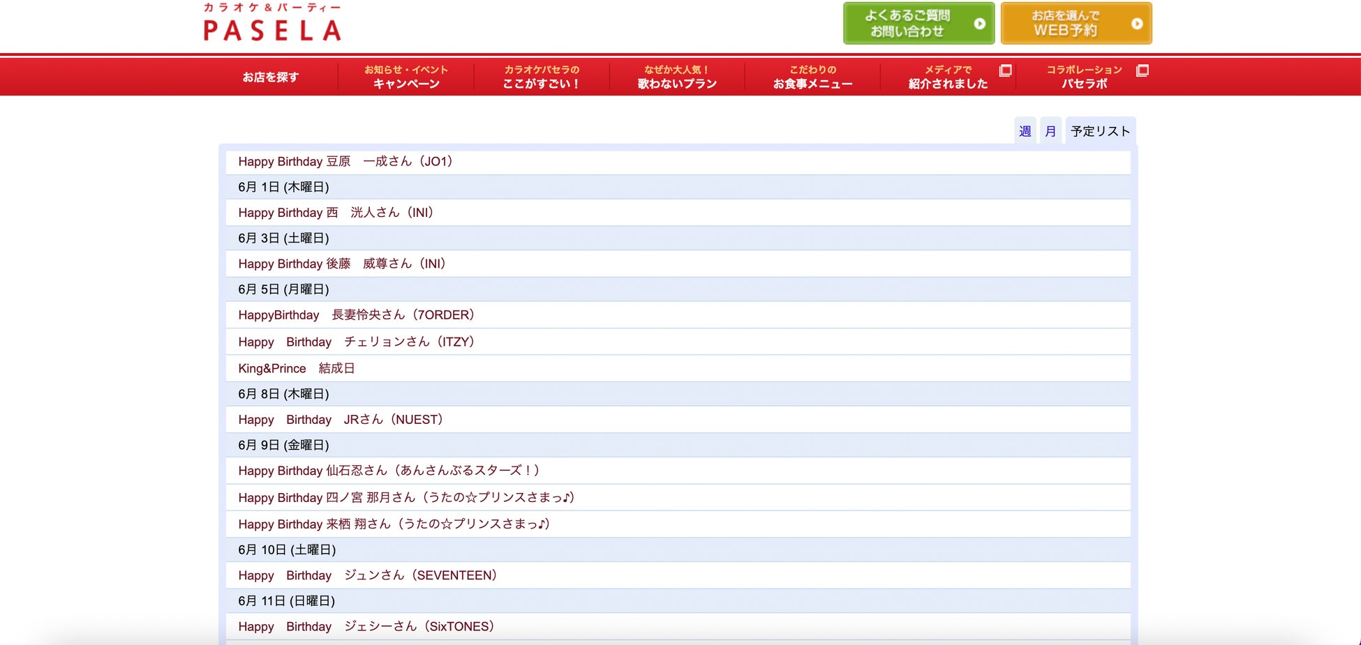 パセラが独自で調査した様々な人気動画配信スケジュールと、アーティストBirthdayカレンダーを作成しました。パセラの公式ホームページからどなたでもご覧いただけます。