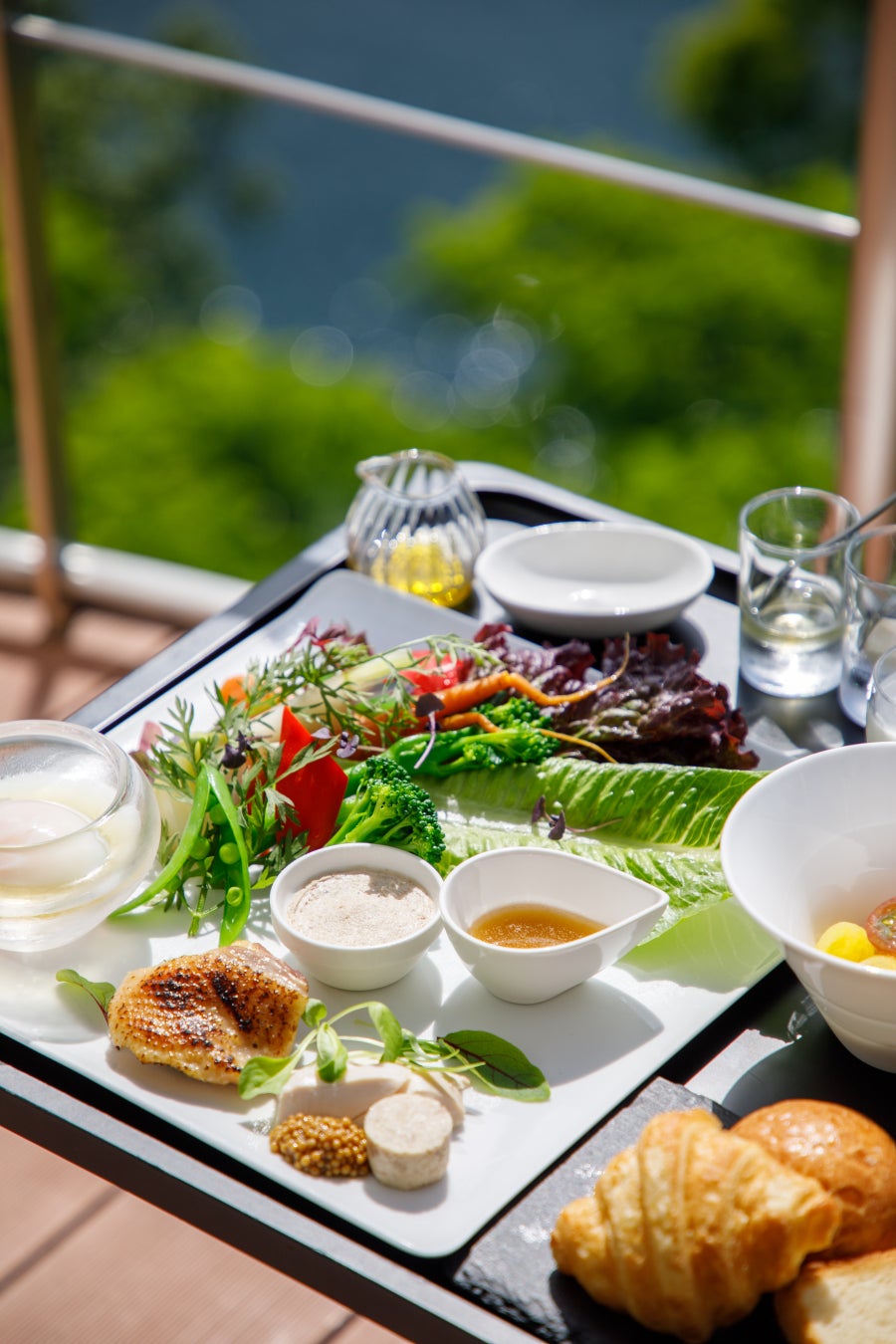 客室から空へと伸びる「インガーデン」では、オーシャンビューのプライベート朝食をご用意。一日の始まりを、ふたりだけの特別な時間に。