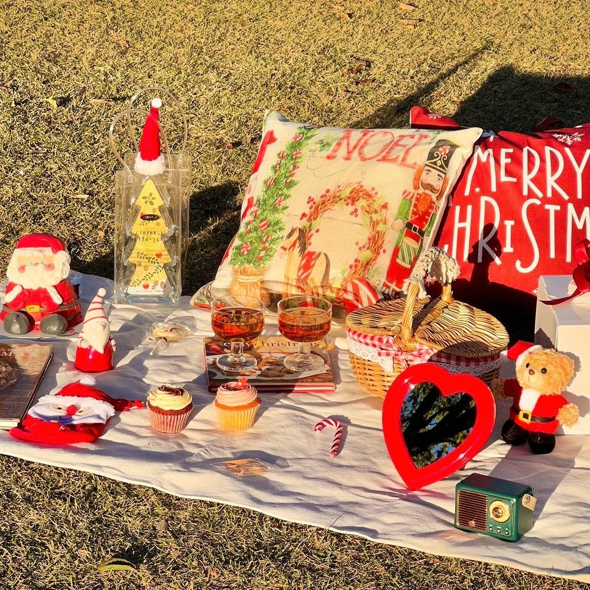 クリスマスらしいカラーや装飾で、どこを切り取ってもSNS映え。赤とゴールドを基調にしたセットアップが、冬のピクニックを華やかに彩ります。