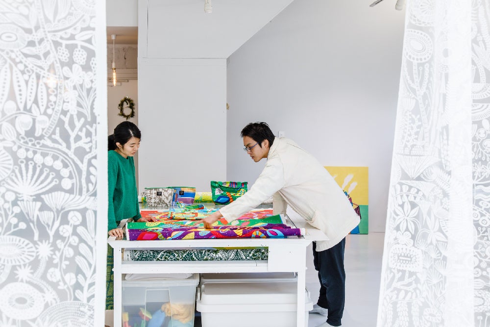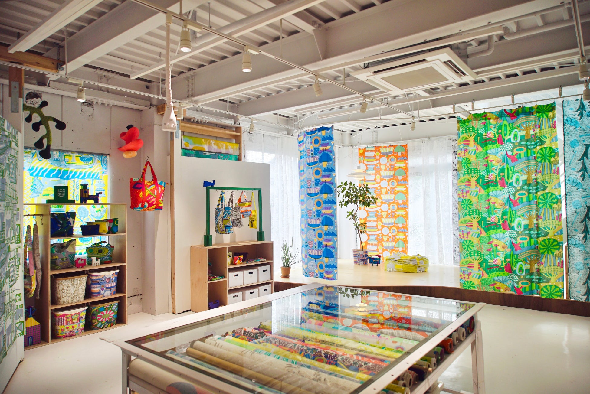 炭酸デザイン室のデザインスタジオ「TANSAN HOUSE」が竣工し2023年秋より、1Fのデザインスタジオにショップ空間としてオープンしました。ここではTANSAN TEXTILEのファブリックやバッグ、ポーチ、一部コラボレーション製品が購入でき、過去のアートワークのアーカイブ、テキスタイルのストーリーなど、見て感じることができる場となっています。