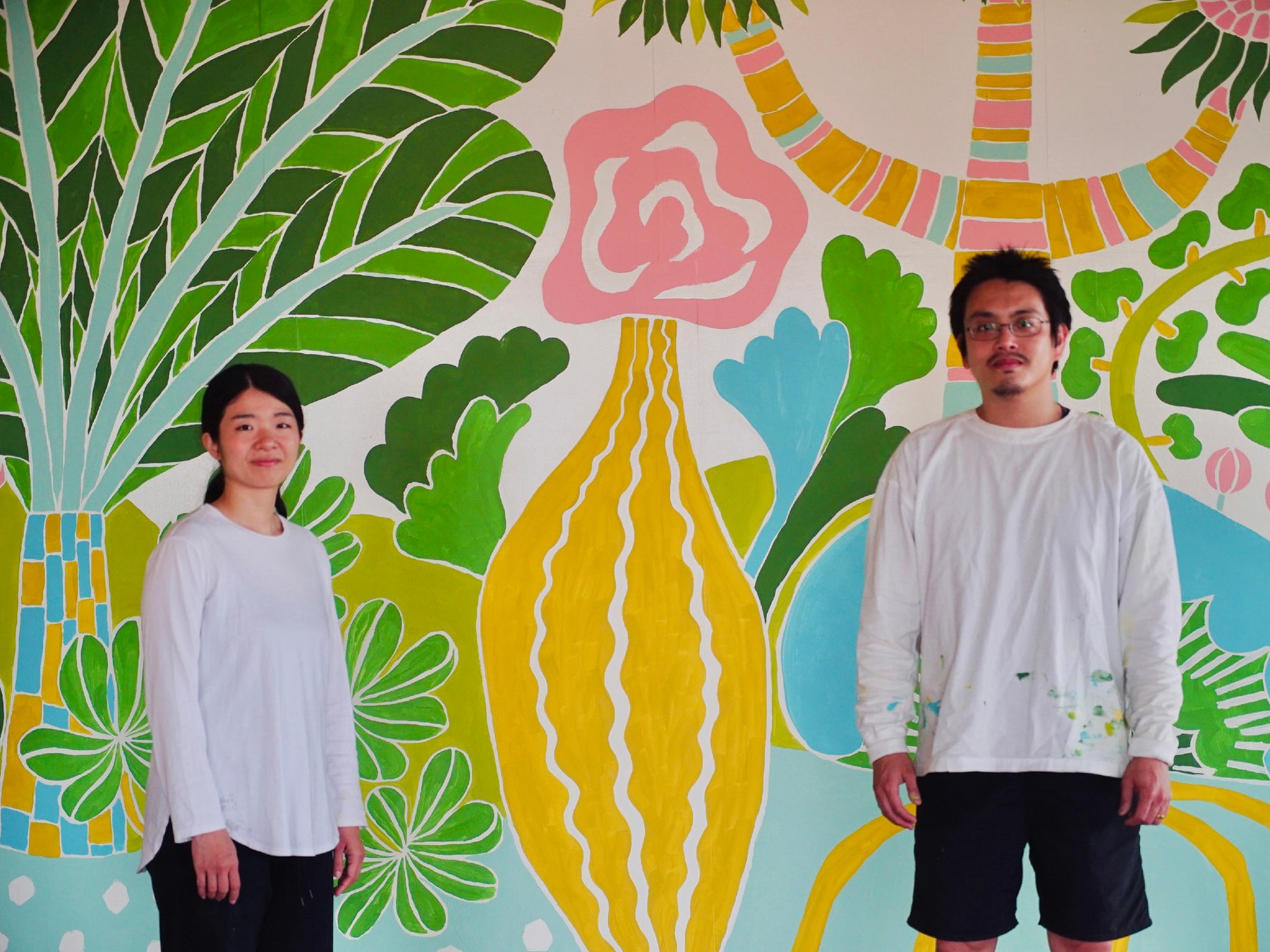 WhOとのコラボレーションでは、南の植物ならではの肉厚で大きな葉や、伸び伸びしておっとりした風土を表現した「南の植物」という柄の壁紙を発表します。自然の生命力のエネルギーを屋内でも感じ取れるよう、大きな一枚絵のような壁紙を描きました。会場の一部では、背丈を大きく超えるサイズで描いた植物に、抱かれるような空間を作りあげます。
