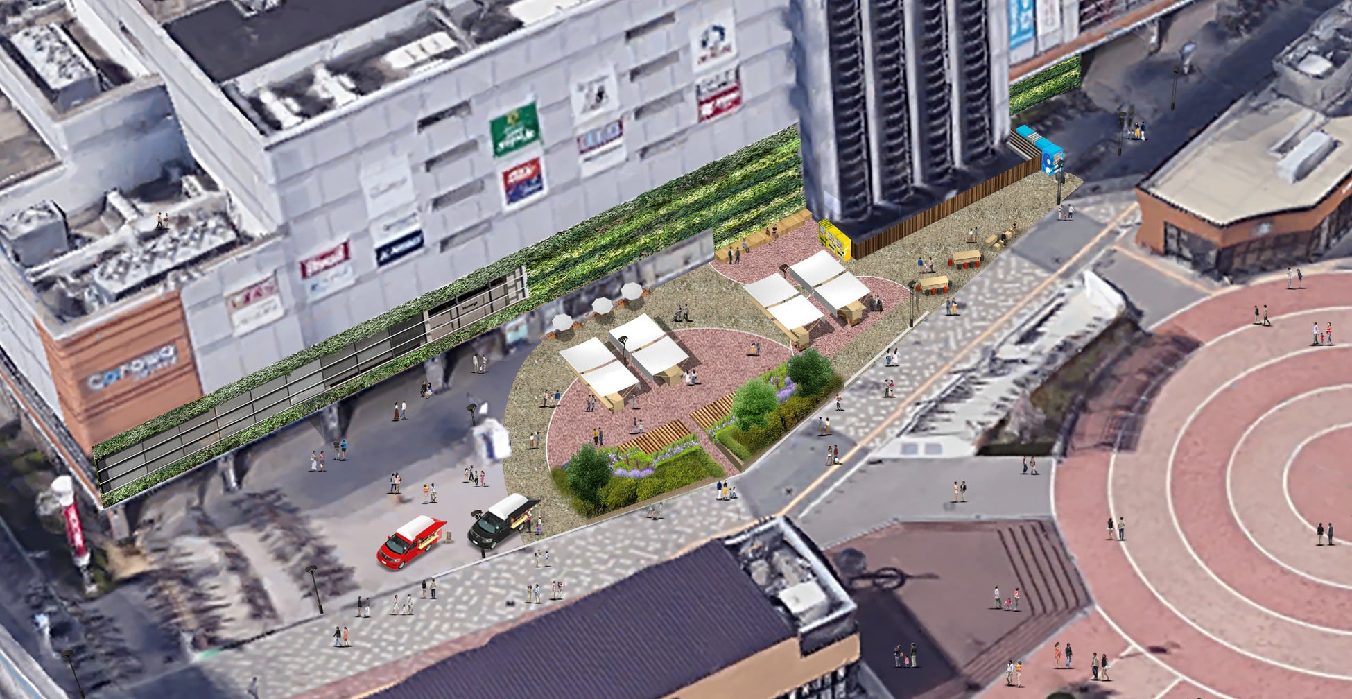 ●駐輪場の移設によって、キッチンカーやトークショーを楽しめるイベントスペースを設けます