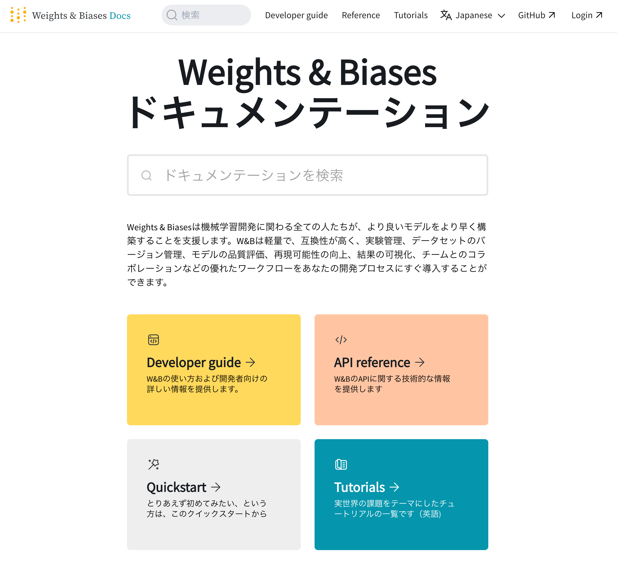 日本語ドキュメンテーションへの直リンク:https://docs.wandb.ai/ja/