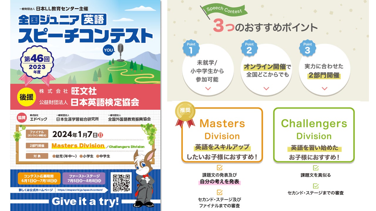 第46回 全国ジュニア英語スピーチコンテスト開催 【主催】一般財団法人 日本LL教育センター 【後援】株式会社 旺文社、公益財団法人 日本英語検定協会