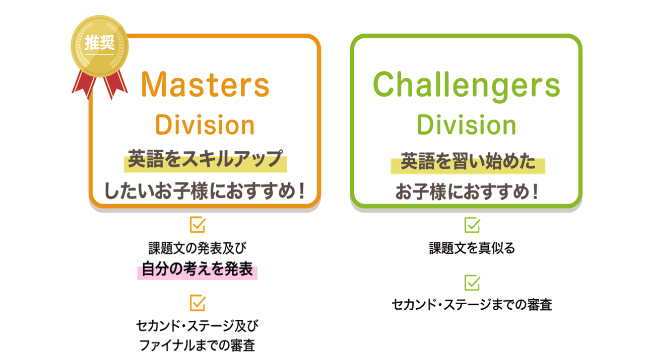 当コンテストは幼児(年中)から中学生までが参加できる全国規模の英語スピーチコンテストです。入賞者には豪華な賞品・副賞をご用意しております。