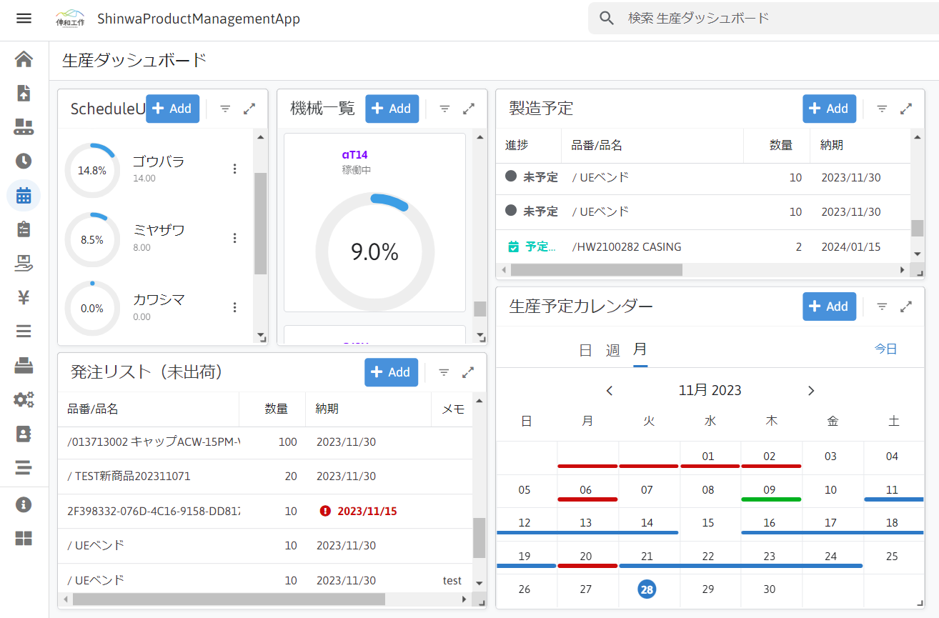 アプリで集計される機械の稼働時間を用いて「稼働率の見える化」を実現します。