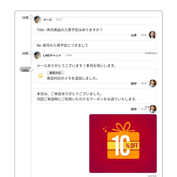 LINE公式アカウントのリッチメニューや自動応答、チャット、一斉メッセージ配信の管理を行うことができます。また、顧客データベースに登録された情報をもとに、より精緻な顧客グループ(セグメント)に対して、精度の高いメッセージ配信が可能となります。 -