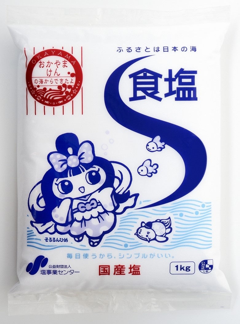 (パッケージに「そるるんひめ」を掲載している「食塩1kg」)