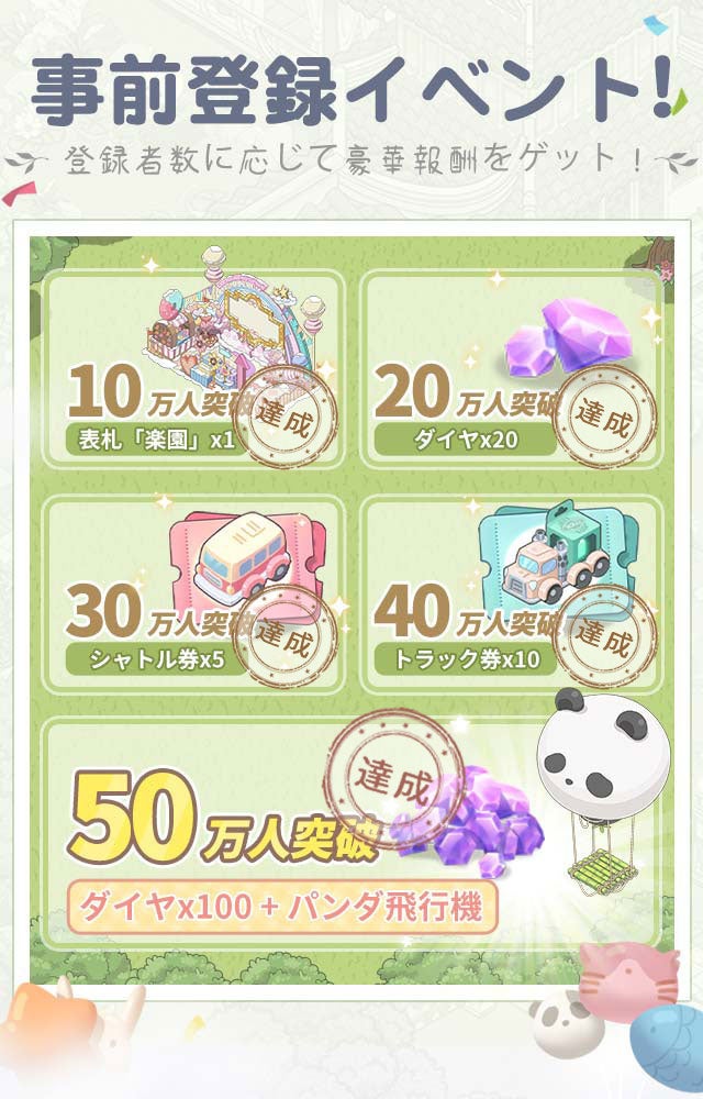 「ドリーミーランド~遊ぼうよ、どうぶつの仲間たち~(ドリラン)」事前登録者数が50万人を突破。
