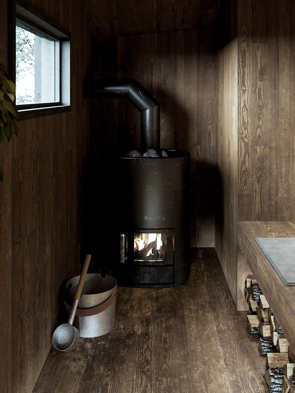 フィンランド Narvi社のサウナストーブを標準装備。