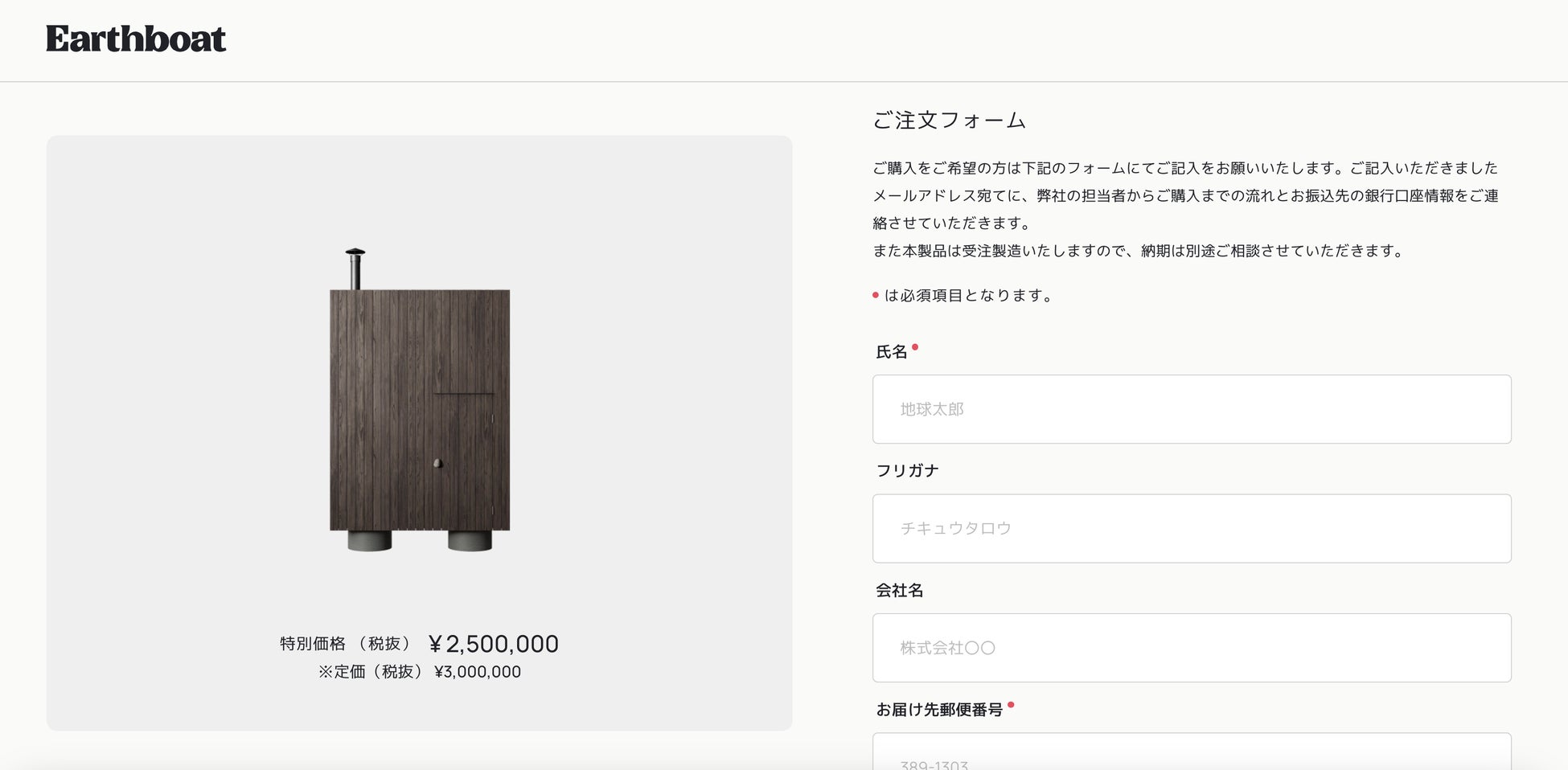 ご注文は、公式サイトのEarthboat Saunaページのフォームから行っていただけます。