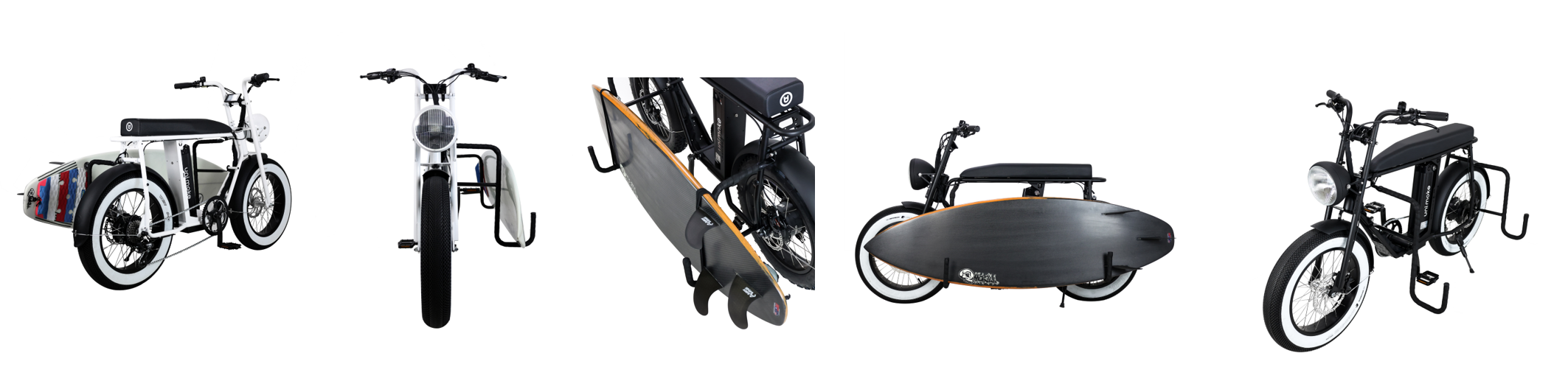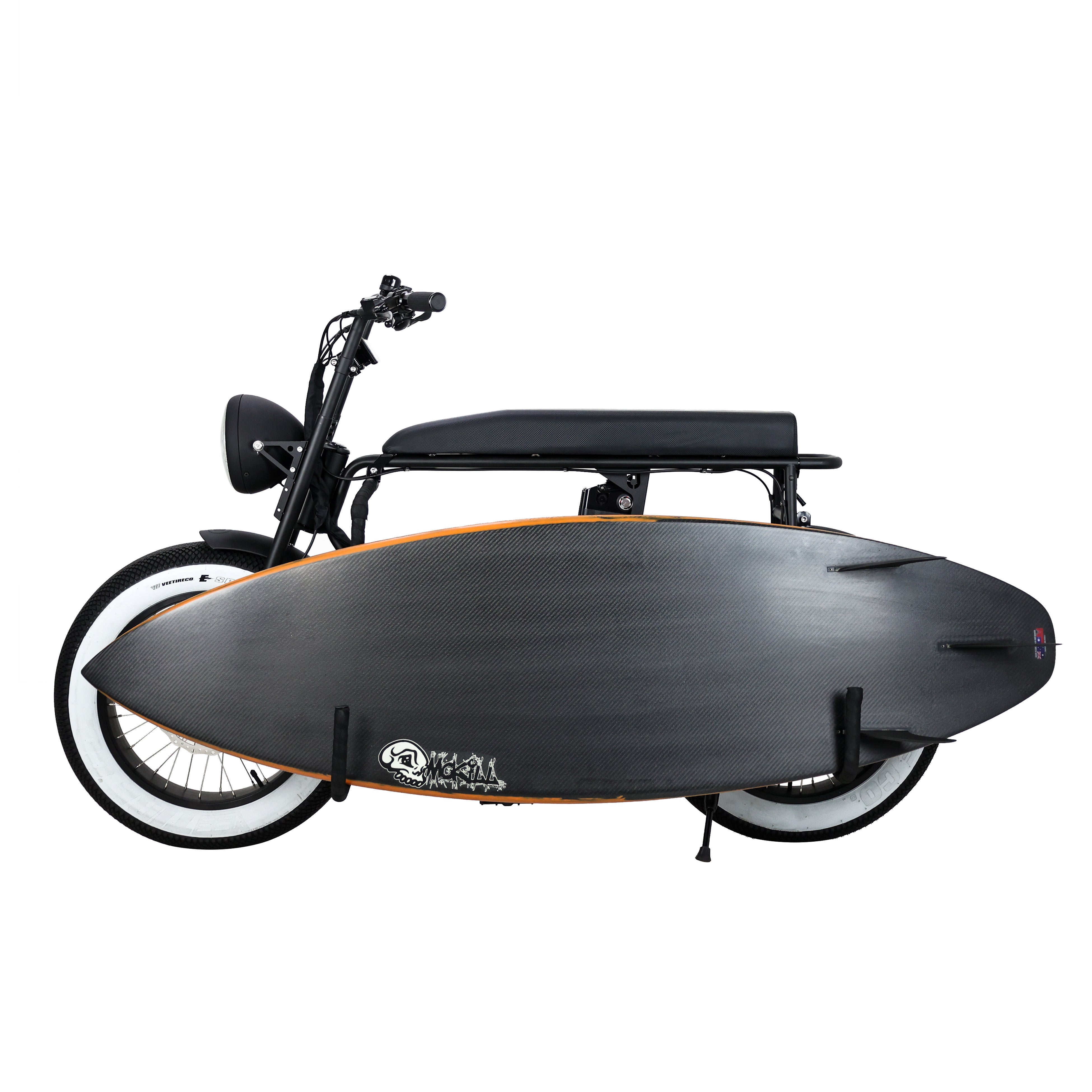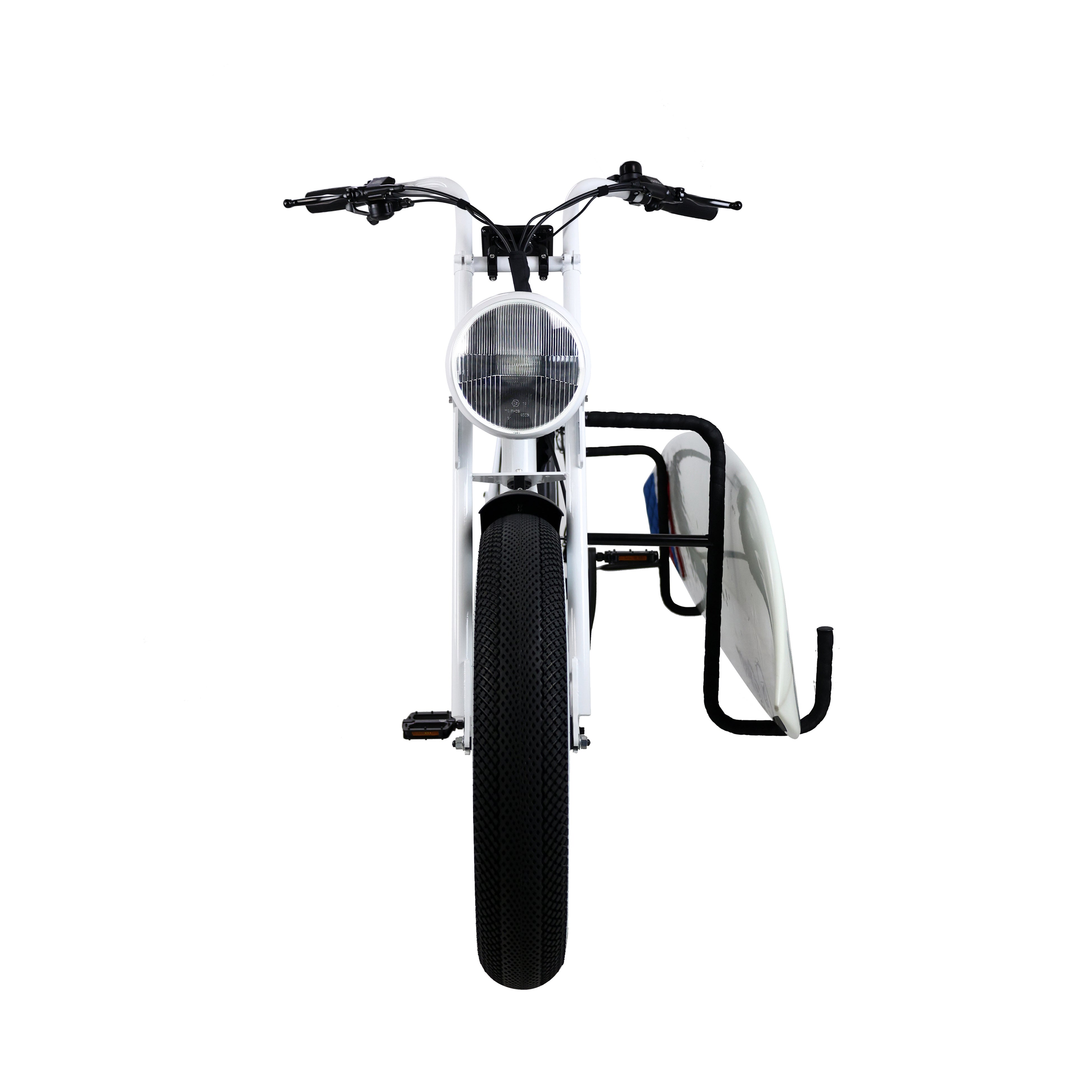 ・サーフボードスタンド ・VEEタイヤホワイトウォール(前後2輪) ・前後フェンダー ・Panasonic製リチウムイオンバッテリー(48V/16Ah) ・SHIMANO7段変速機 ・5段階アシストモード ・バーファン製500Wモーター ・充電アダプター(入力AC100V~240V)※日本PSE適合