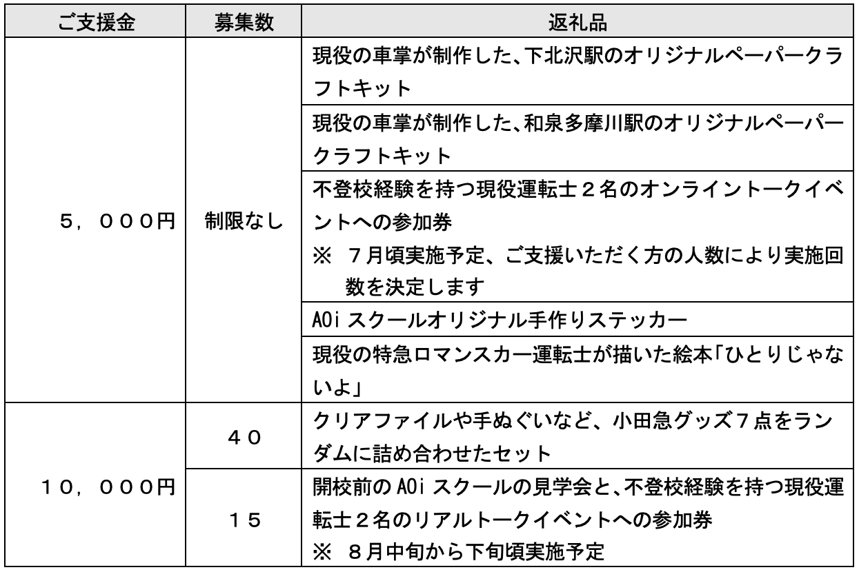 応募方法:「READYFOR」クラウドファンディングプロジェクトページより(https://readyfor.jp/projects/odakyu_AOi_school)