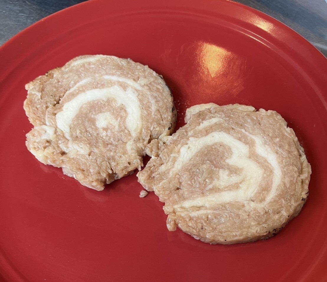 同試食会において、新製品としてプラントベースのチャーシューを発表しました。市場にもすでにプラントベースのチャーシューは存在していますが、プレスハムタイプのチャーシューや、車麩等を使用したチャーシューが多くあります。当社は通常のチャーシューのような脂身を再現したことが画期的であり、脂身に熱を加えても溶けずに残るように加熱耐性を持たせ、口に入れたときには口どけのよい特徴的な食感にこだわりをもって開発しました。