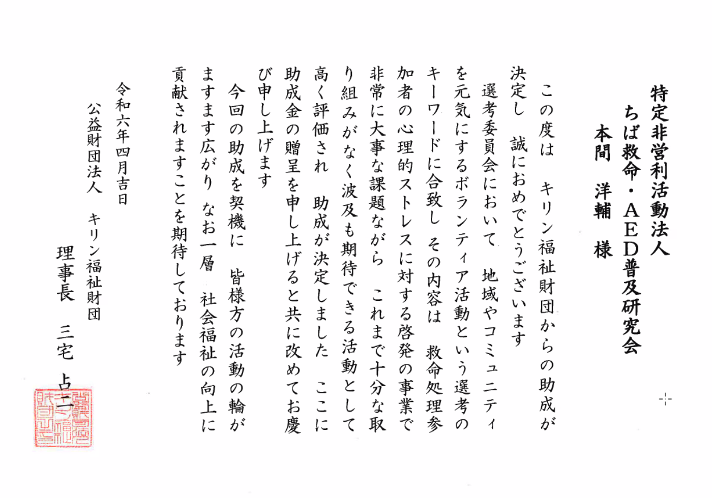 「救命処置実施者の心理的ストレスに対する啓発資料の制作」について助成をいただき、事業をすすめていくことになりました。
