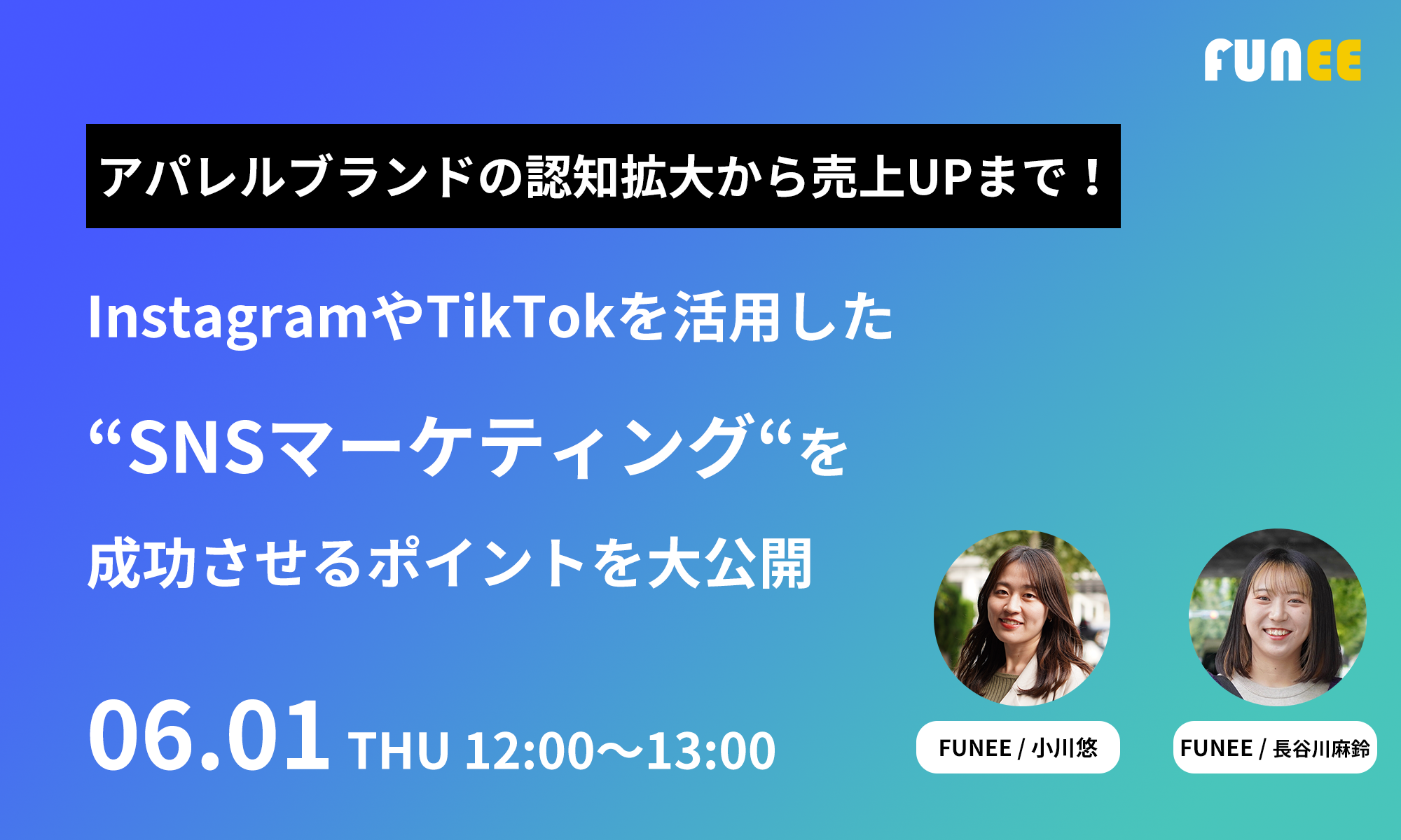 【6/1(木)無料ウェビナー開催】アパレルブランドの認知拡大から売上アップまで!InstagramやTikTokを活用した“SNSマーケティング“を成功させるポイントを大公開
