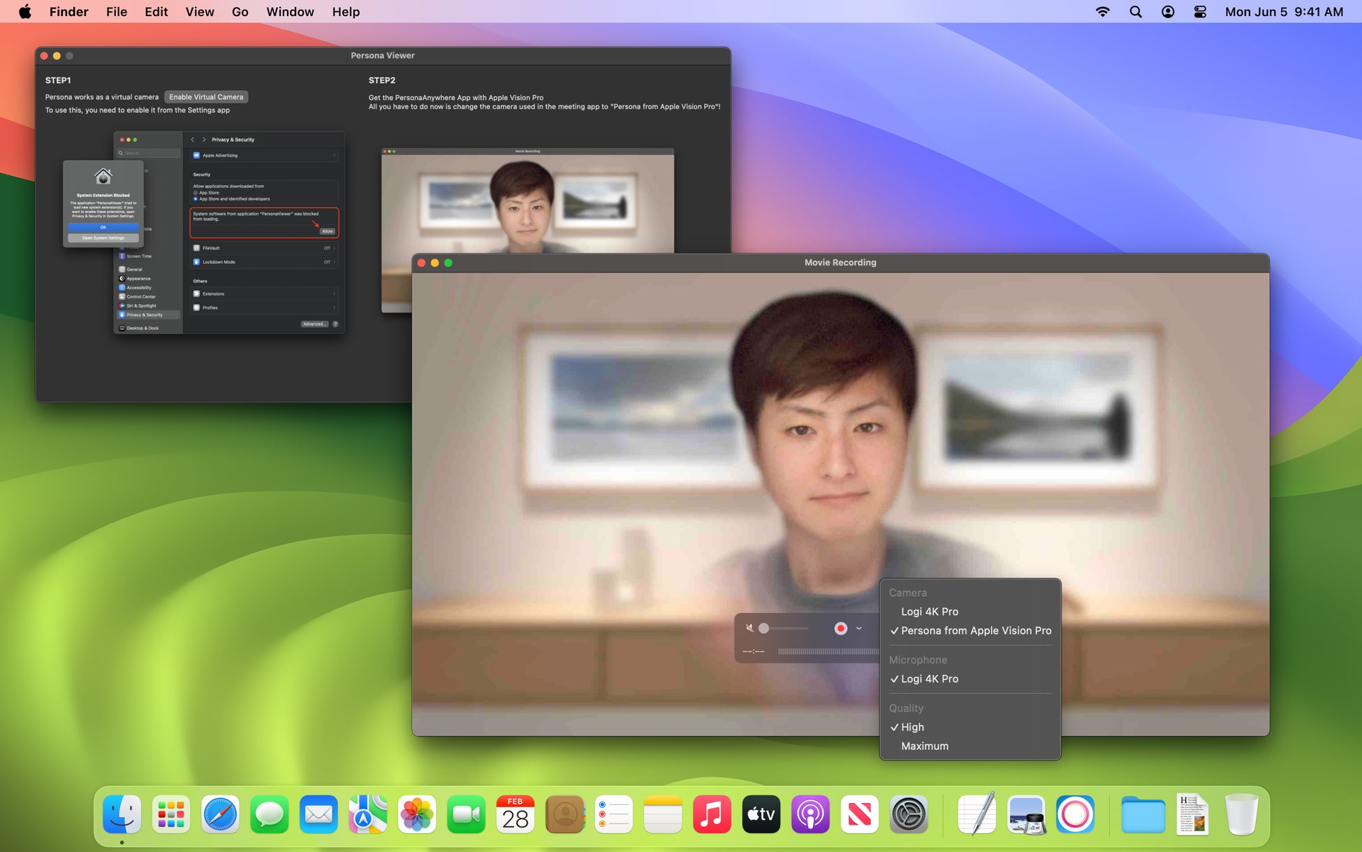 「Persona Anywhere」はシンプルな設計となっており、誰でも簡単に利用可能な製品を目指して開発されています。このアプリが Apple Vision Pro の Persona を Mac に転送する役割を果たします。
