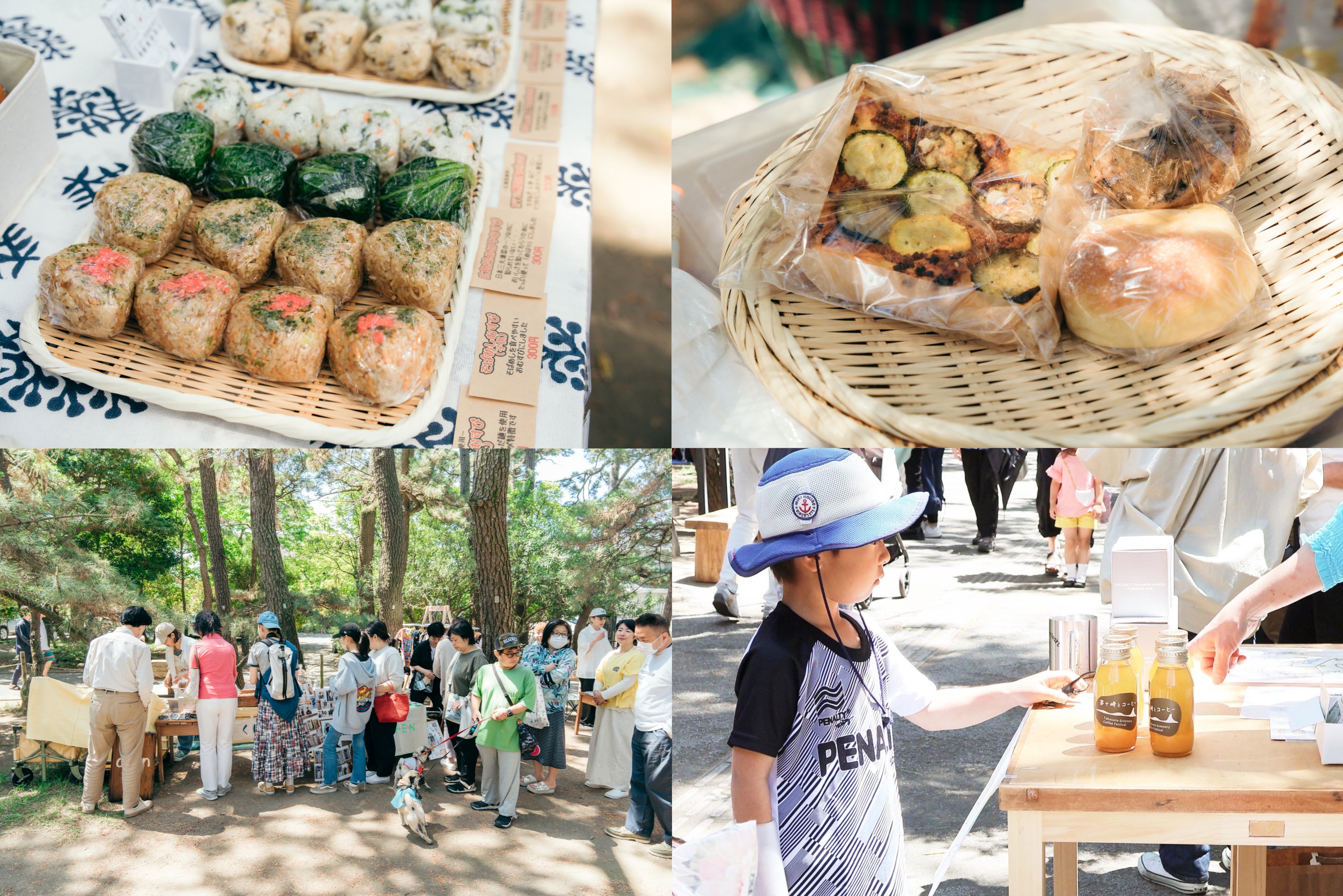 去年に引き続き今年も5月初旬にしては暑い位の快晴。松林に囲まれた高砂緑地は、木陰がふんだんにあり、心地よい木漏れ日の中で来場者と出店者が気持ちよく交流できた1日でした。