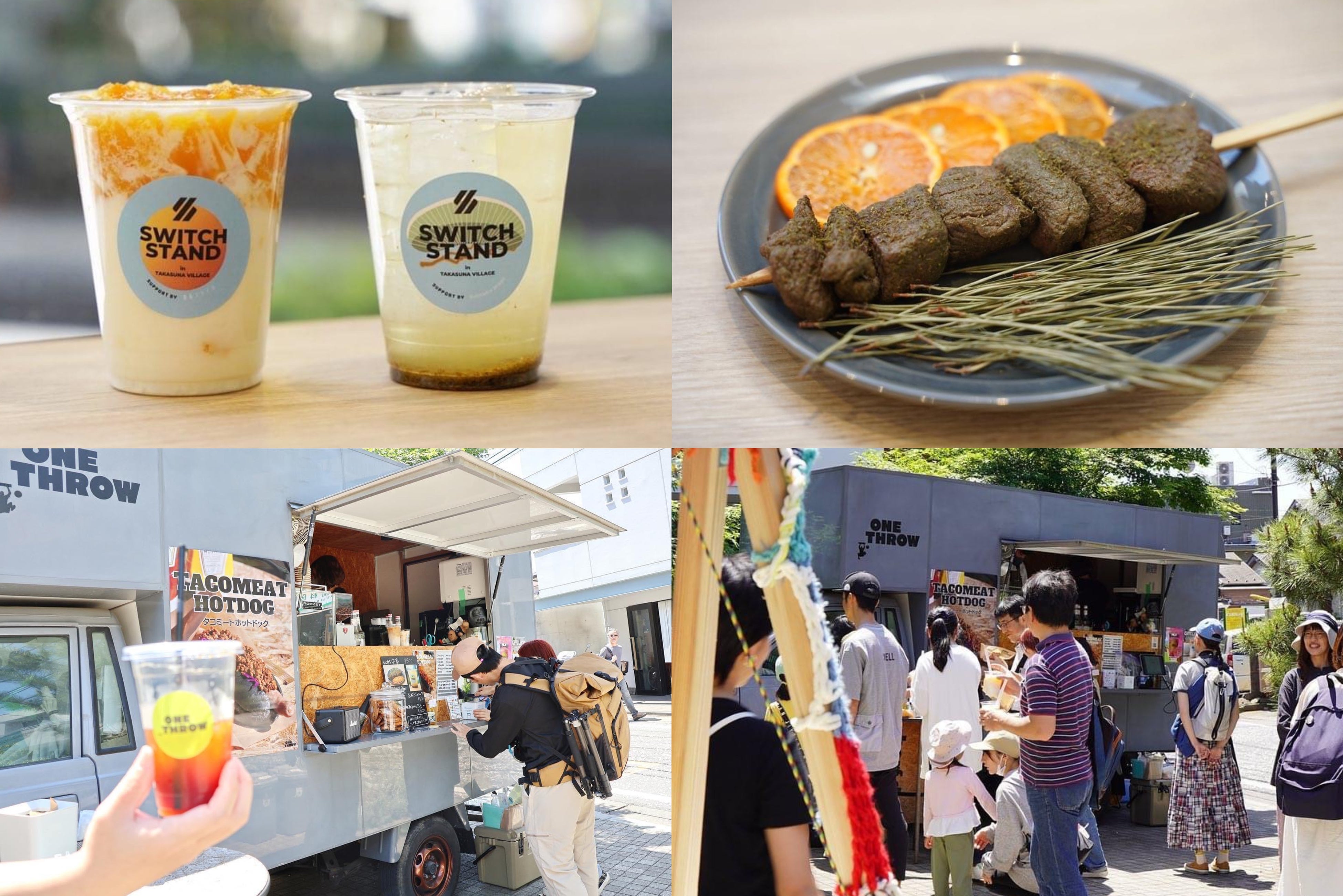 「ONE_THROW」のキッチンカーでは肉汁溢れるソーセージと竹炭パンのオリジナルホットドックとコーヒーや「MacKenDy」のクラフトビールを販売。また、「NPO法人湘南スタイル」のみかんと「吾輩は松であるぞ」の松パウダーを使ったイベント限定のドリンクとフードを「SWITCH STAND」が開発し、販売しました。