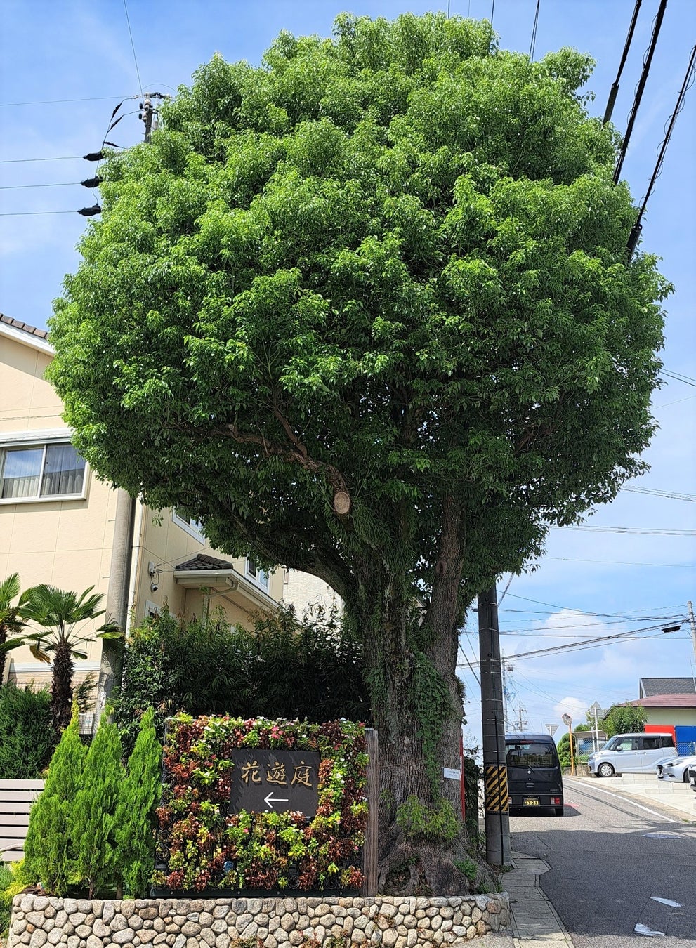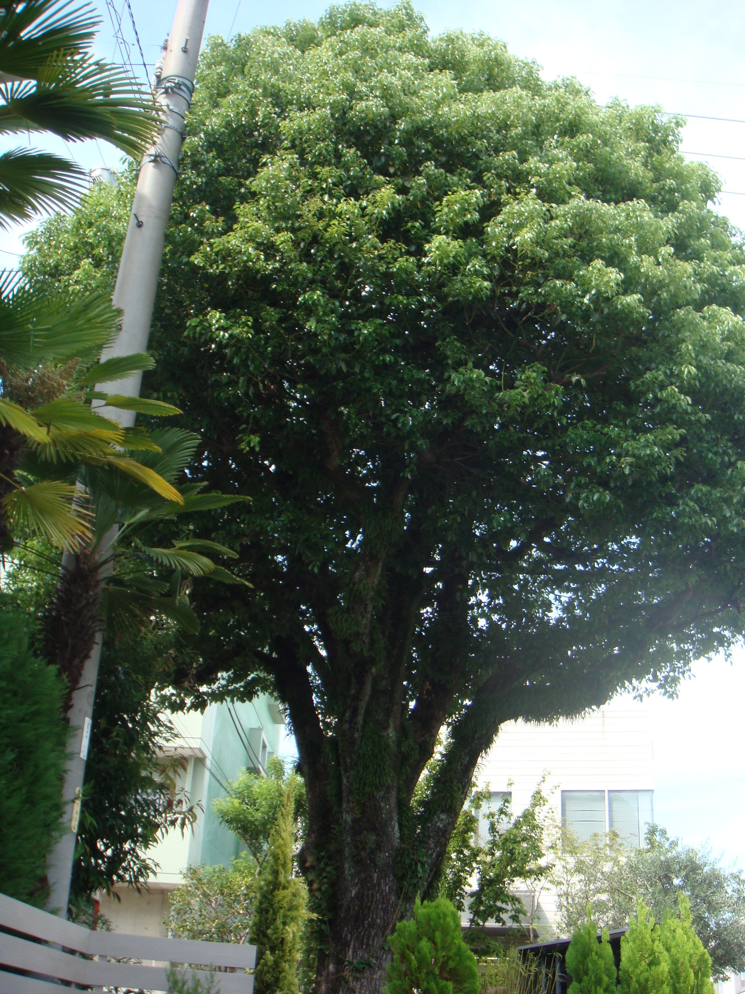 巨大なクスノキは、高さ8mで樹齢70年。