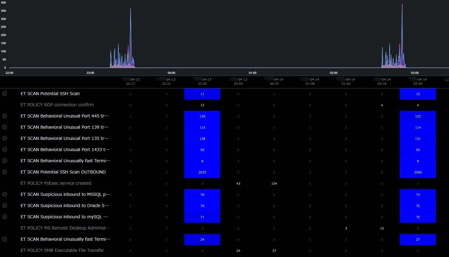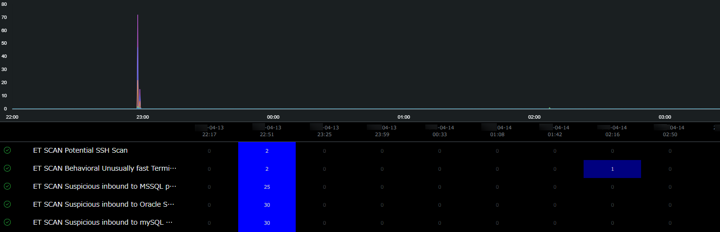 1.外部のIPアドレスから内部ネットワークへの大量のスキャンを検知