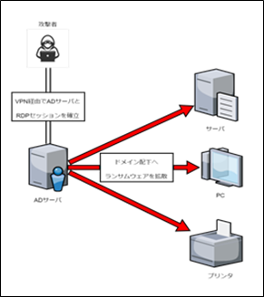 →リモートで内部のIPアドレスに対してランサムウェアを拡散していることが判明。
