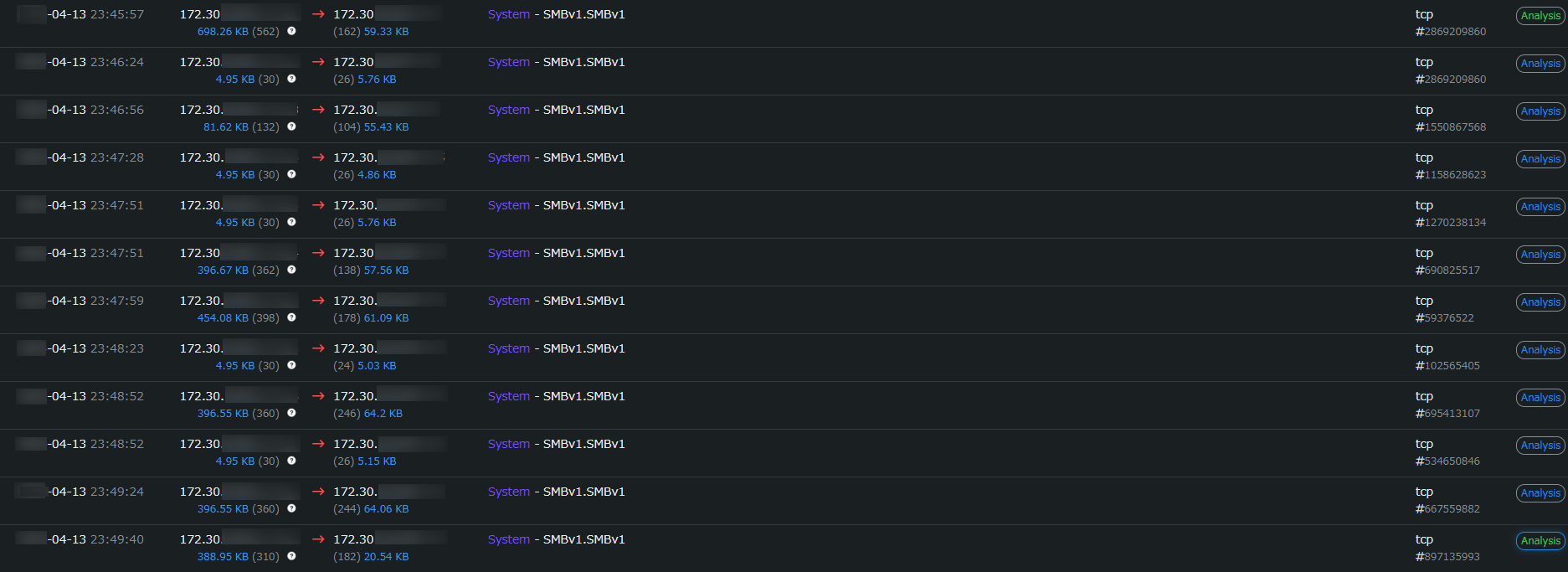 ↑疑わしいIPアドレスからランサムウェアを拡散している様子