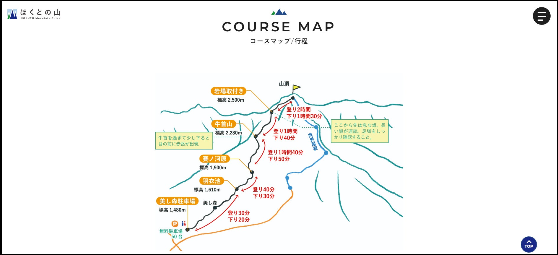 各山々の登山・トレッキングコースをイラストマップでわかりやすくご紹介します。
