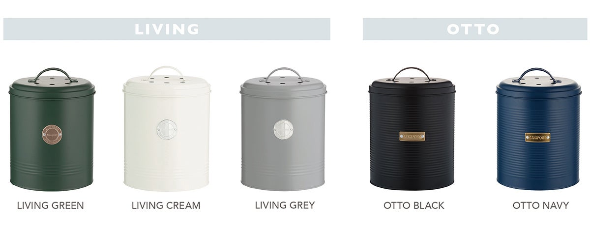 快適なコンポスト生活をサポートする「COMPOST CADDY」は、本体とプレートのデザインが違う「LIVING」と「OTTO」の2シリーズ、全5SKUでの展開。ナチュラル、モダン、レトロ、など、キッチンのテイストやカラーに合わせてお選びいただけます。