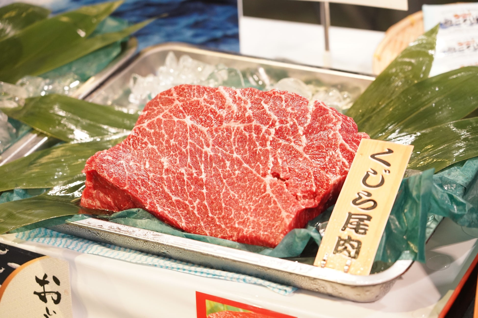 冷凍肉と比べ、解凍による旨み成分の流出がなく、鯨肉本来の旨味が凝縮されており、もっちりした食感が特徴です。