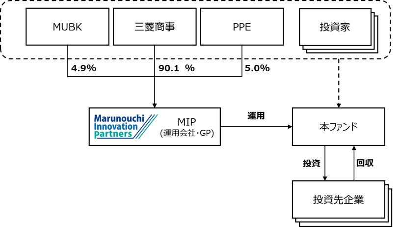 本ファンドは三菱商事株式会社(以下「三菱商事」)、株式会社三菱UFJ銀行(以下「MUBK」)、およびPavilion Private Equity Co., Ltd.(以下「PPE」)が組成したもので、丸の内イノベーションパートナーズ株式会社(以下「MIP」)を通じて、気候テック関連スタートアップ企業への成長投資を行います。
