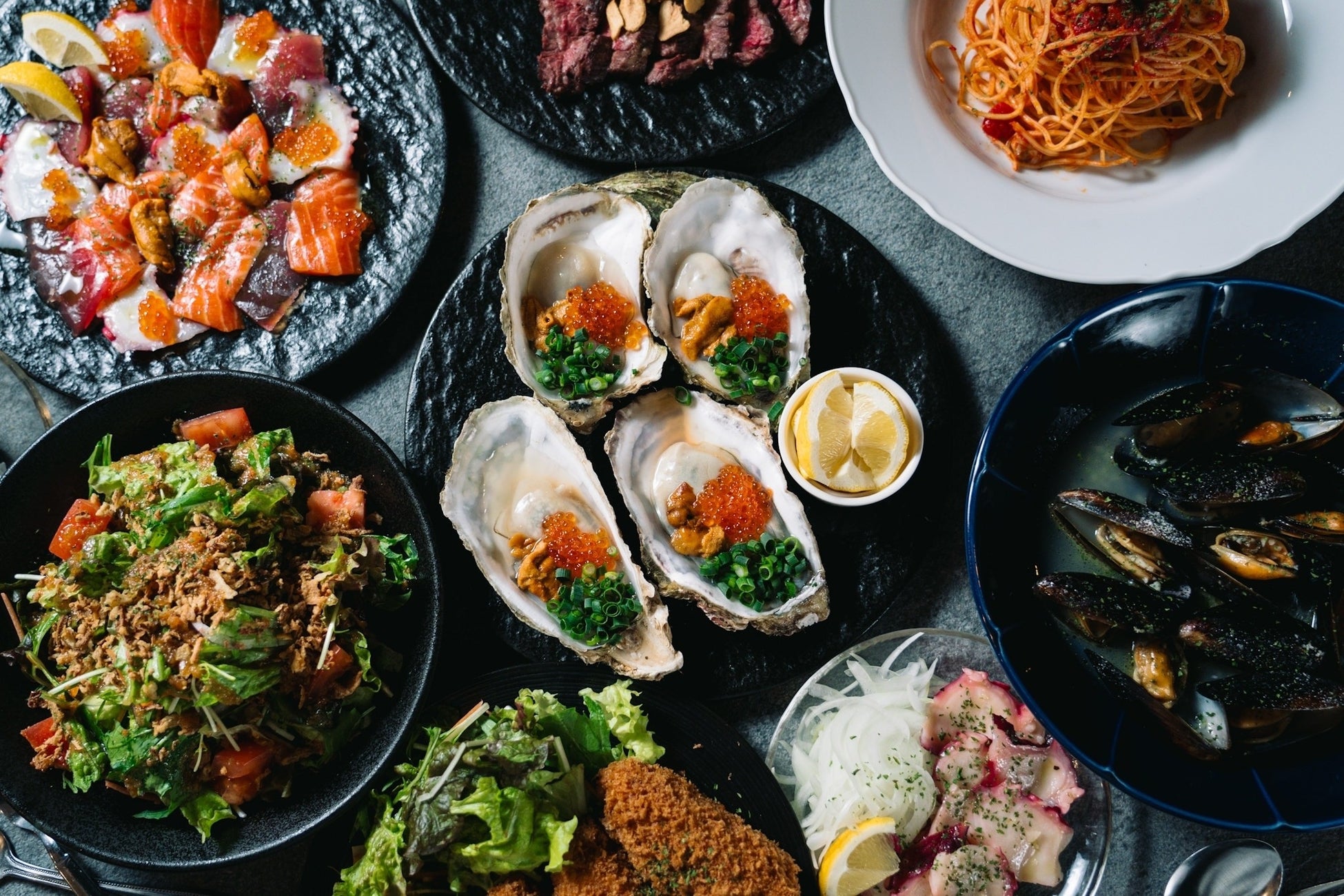 日々市場から仕入れる新鮮な海鮮や牡蠣料理をメインにさまざまな創作料理をご用意。