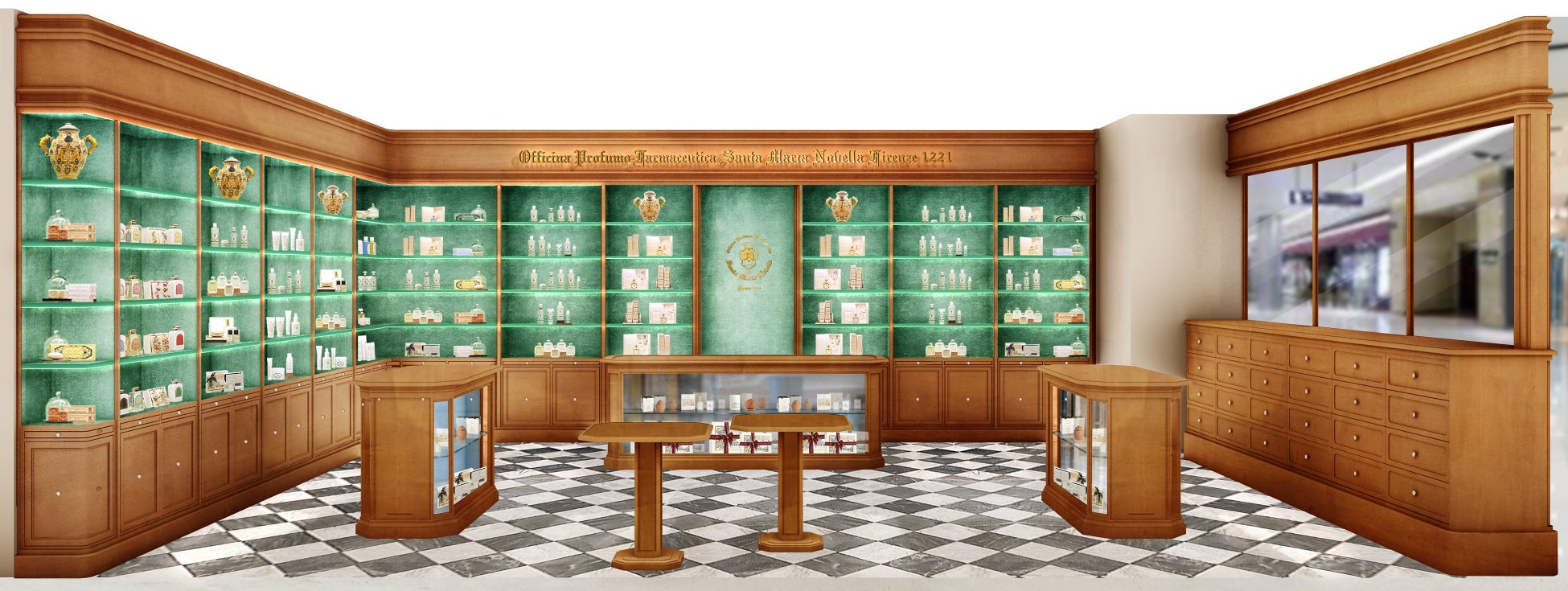 1221年にイタリア、フィレンツェに設立されたサンタ・マリア・ノヴェッラ(公式名:オフィチーナ・プロフーモ・ファルマチェウティカ・ディ・サンタ・マリア・ノヴェッラ)は、神戸エリア初となる新店舗をオープンします。サンタ・マリア・ノヴェッラ教会(現在のフィレンツェ本店)内部で19世紀末まで修道院薬局として人々を迎えていた部屋から着想を得てデザインされた店内は、木目調の什器の温かみとともにブランドの歴史を今に伝えると造りとなっています。また、ソープやスキンケア製品もテクスチャーの好みや肌質に合わせてお選びいただけるよう、日本初導入となるシンクも備えます。かつて修道士たちが人々に寄り添いながら各々に最適な製品をお届けしていた修道院薬局のように、スタッフがお客様一人ひとりに合わせた製品選びをお手伝いさせていただきながら “世界最古の薬局”サンタ・マリア・ノヴェッラならではの体験をお楽しみいただけます。また新規店舗オープンを記念して、香水のボトルにお名前や記念日を施すエングレービングサービスや、ご購入者様への特別なギフトとして“タボレッタ”をご用意しております。*数に限りがございます