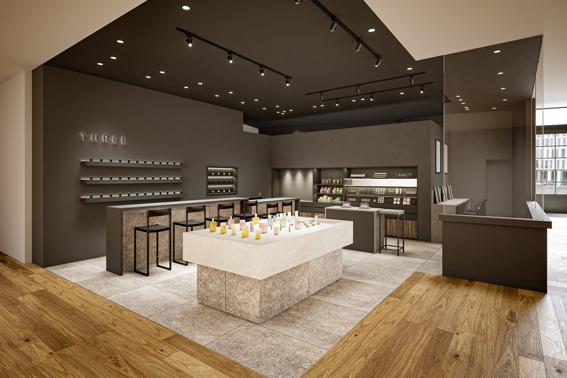 関西エリア初のフレグランスを中心に展開をするコンセプトショップ従来のTHREE定番アイテムのメイクアップアイテムはもちろんのこと、ホリスティックケアアイテムに加え、関西エリアでは初のエッセンシャルオイル、精油を使用したブレンドティを展開。THREEの「香り」×「色」を体験できるコンセプトショップとなります。